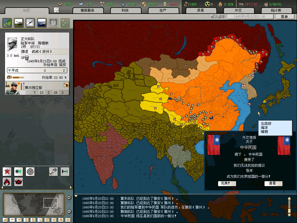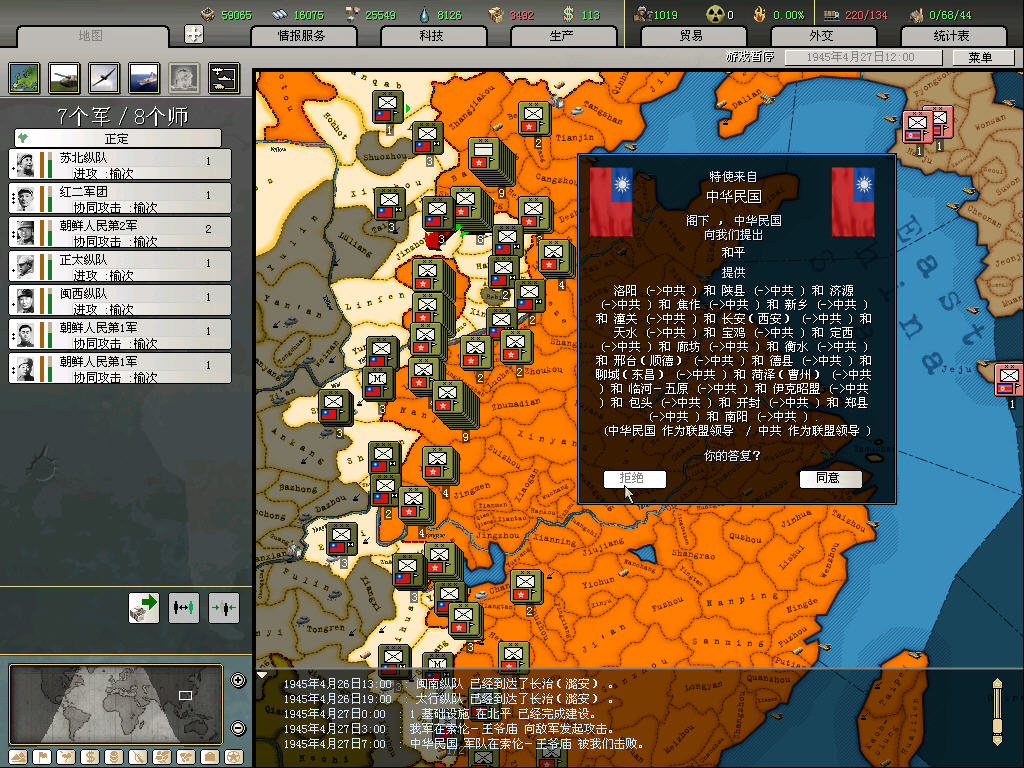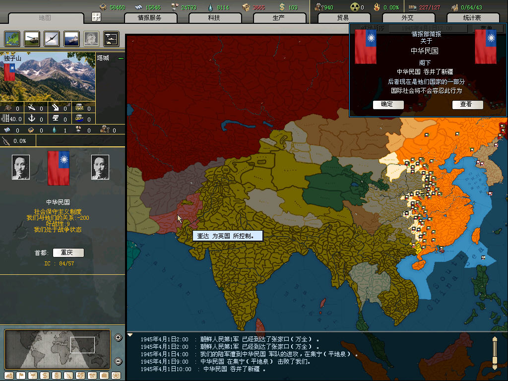 tg打完内战黄花菜都凉了....美国一接壤就有可能宣你,未投降的日本时不时跑来抱大腿,被默认为轴心势力?