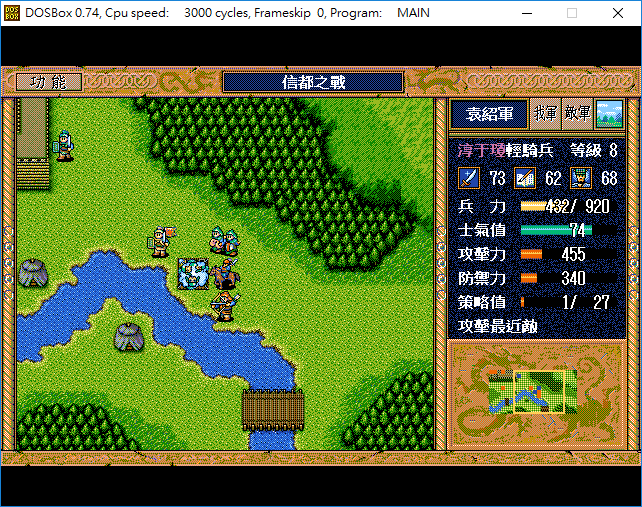 採用GB4,隨機數、晴天、兵力,士氣,混亂恢復自選、攻擊性,輔助性策略自選、混亂自選、反擊自選、援助效果最大