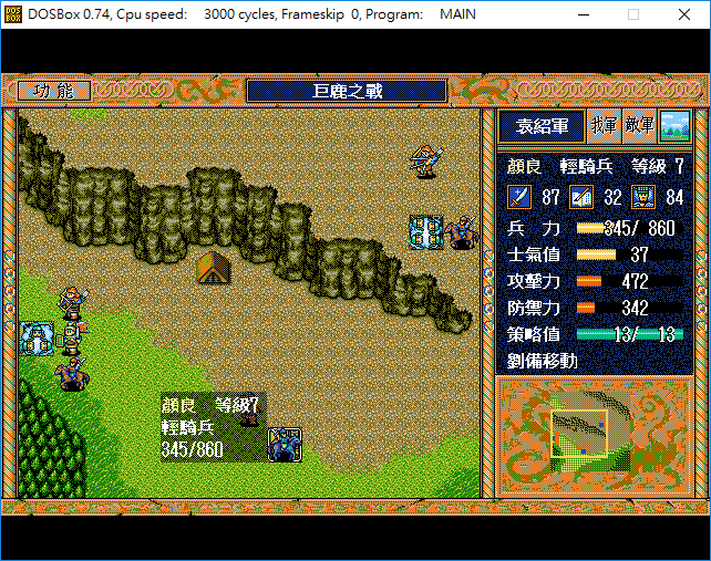 图片附件: [第 9回合 劉備引顏良至荒地,準備混亂顏良。混亂後可讓我軍攻擊以增加獲得經驗值的回合] 04-09.png (2015-10-12 17:47, 60.69 K)