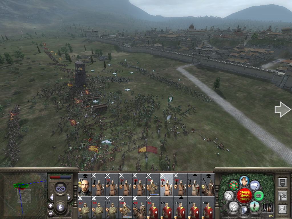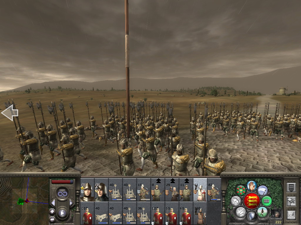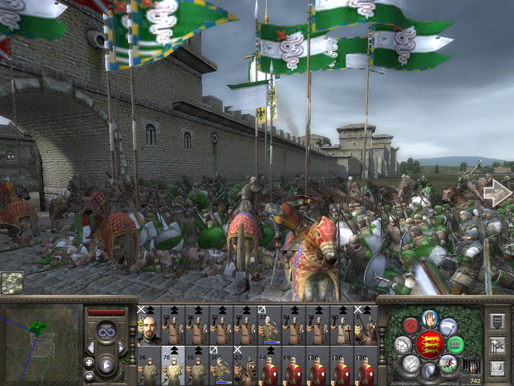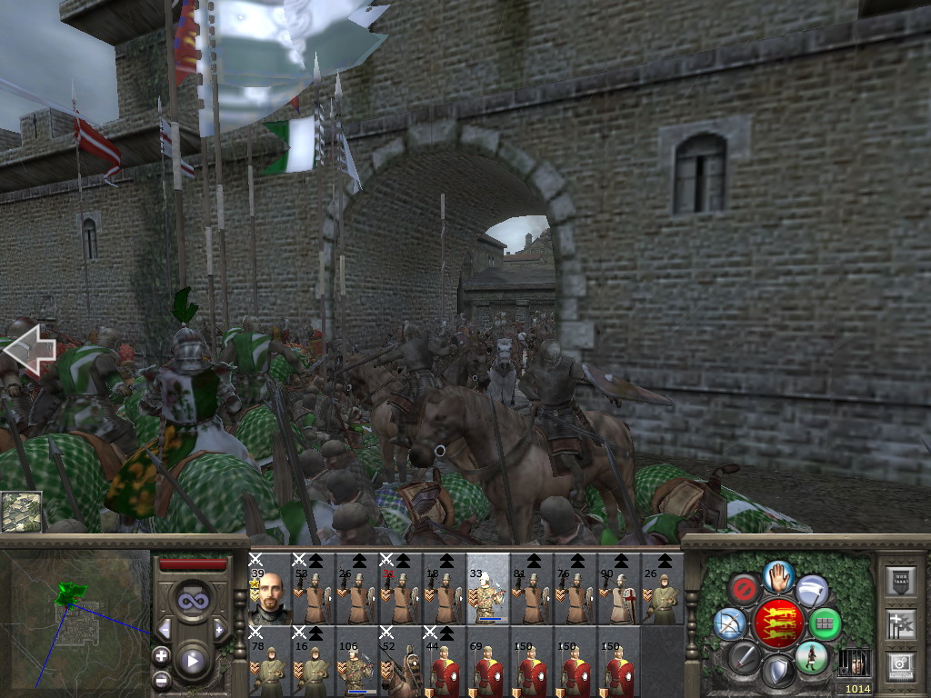 由于双方已经在混战,米兰弩手无法平行射击,只能向天放箭,希望能有几箭对我军造成杀伤……