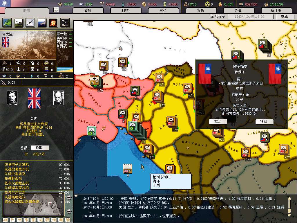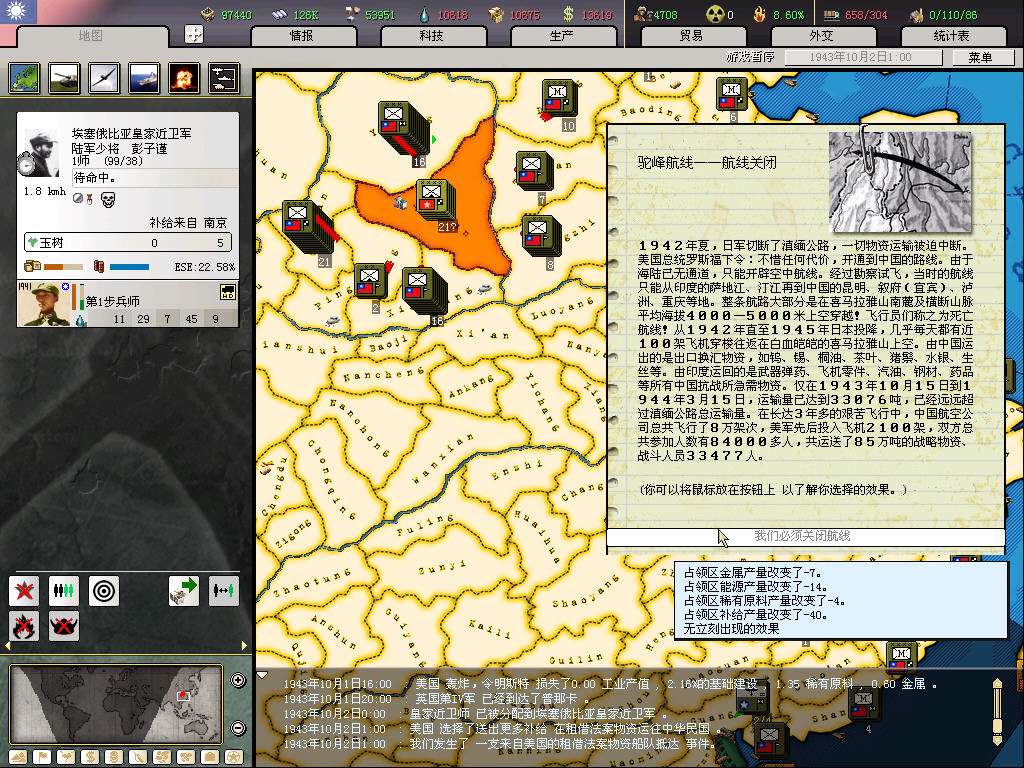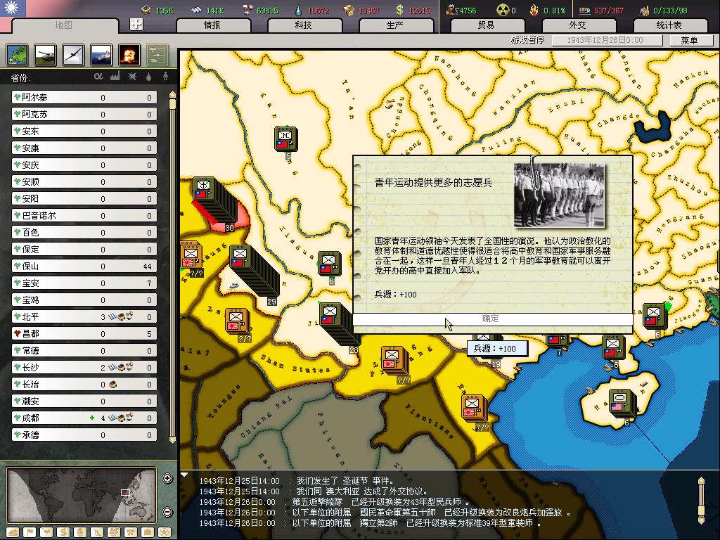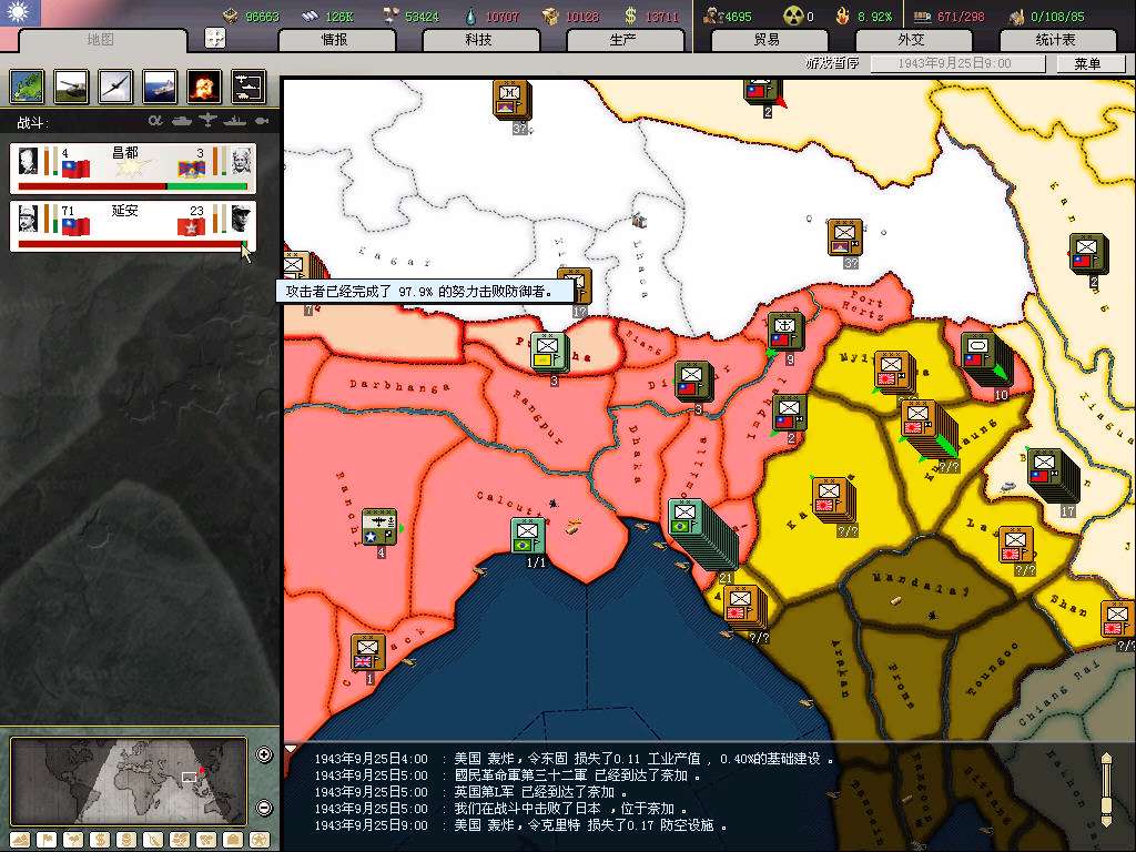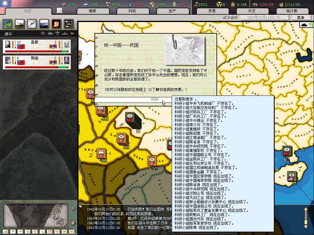 守备密支那失利,至于统一进度,诸位看官请看图,偶就不介绍了。。。
