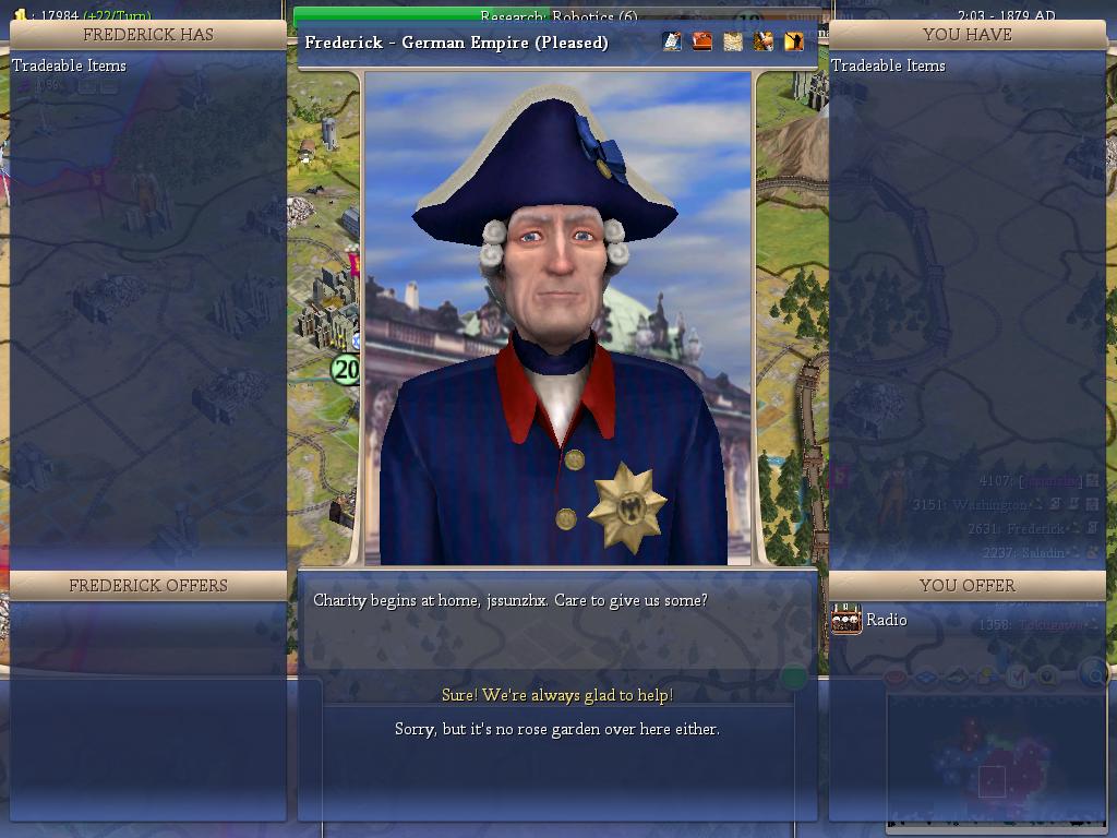有个frindly的盟友就是好,研究出新科技第一时间跑来交易,省自己不少力啊