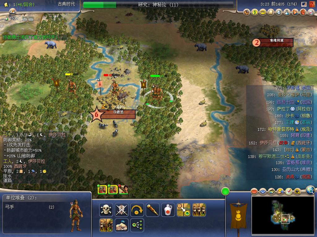 由于塞维利亚是山城,打了不核算,于是饶到巴塞罗娜,这个是平原城,2个小弓守,随着3个小弓的自杀性攻击后,2大棒终于拿下了此城