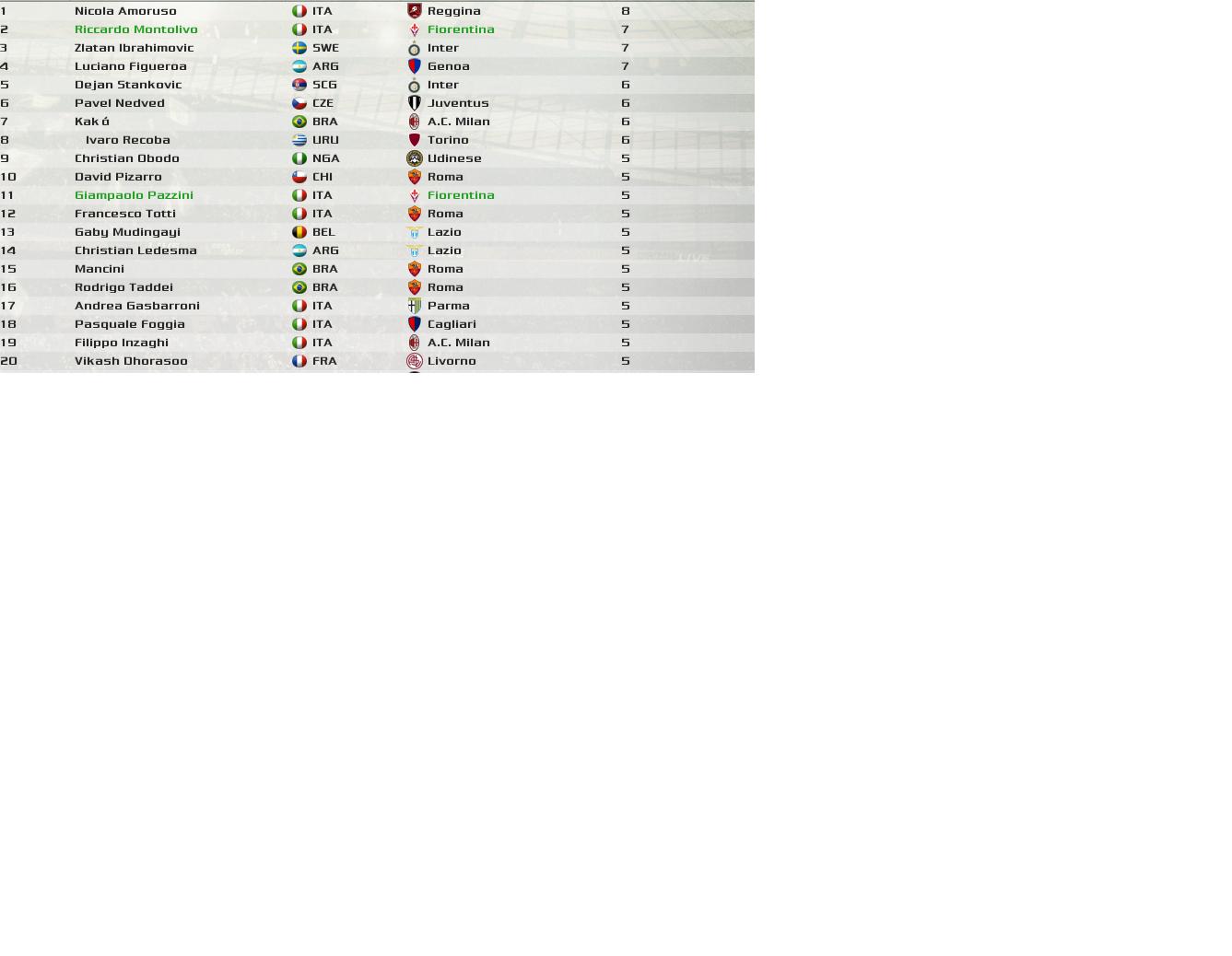 还有一个,Cacia,即将在1月份加盟的前锋,顺带也提一下。与Mutu相比能力和潜力都差了一点,只能打打替补了。