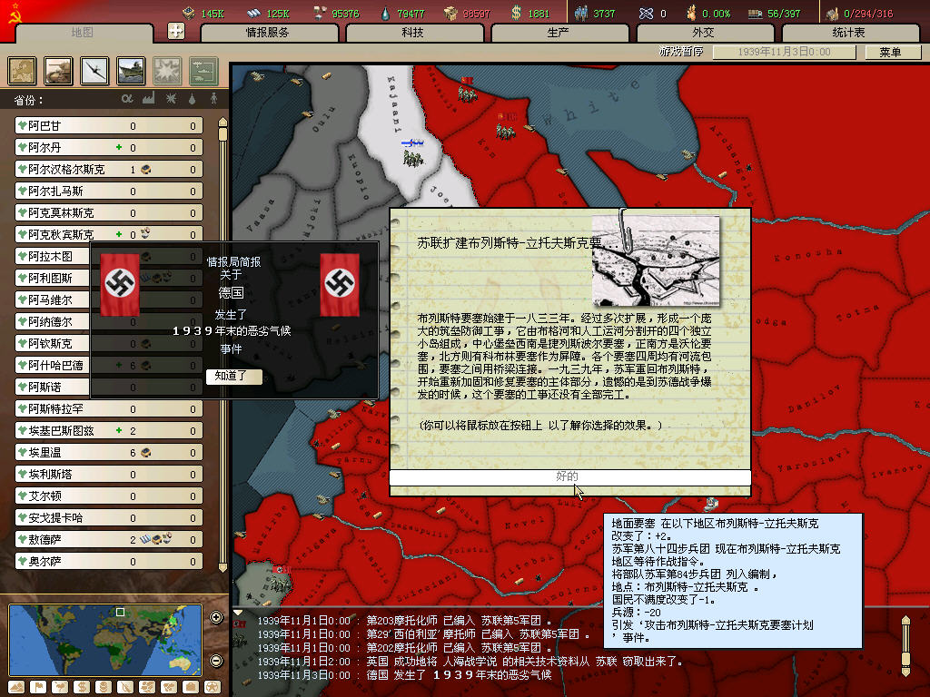 7月左右和伊朗条约到期,这个国家兵少质差,还不守边境险要地形,傀儡掉每天能上缴40多桶油,吞并则可以得到两个不错的科技组,可惜会稍微改变下历史