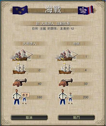 战斗一开始,我的两艘战争用大帆船使用了分进合击的战术。其中一艘抢占上风优势后,使用铁珠散弹大量杀伤敌舰甲板水手,另外一艘则凭借顺风航速的优势逐一进行接舷战。