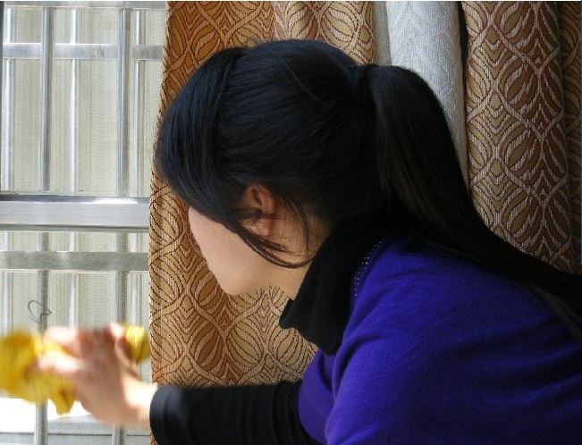 皮肤白晰细嫩,头发乌黑,窗明帘净……阳光和煦,只是穿那么厚的衣服,不热吗?