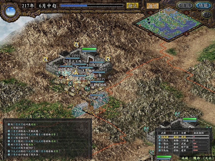 动辄一个长蛇过来,我还没来得及反应就把孟津攻克。但随即洛阳守将吕蒙徐盛等人组混乱弩兵队出击,又把电脑围在港口里打,这一次徐盛狙击,廖化毙命。随后我撤军,电脑再占,再围港。往复几次,刘备军损兵折将,什么关平刘封等辈在这里被擒了无数次。只是因为我也不愿守港口,只得一次次把他们都放了,赚点信望了事。这里也看出AI是死的,人脑是活的,只要想玩弄电脑总是有办法。