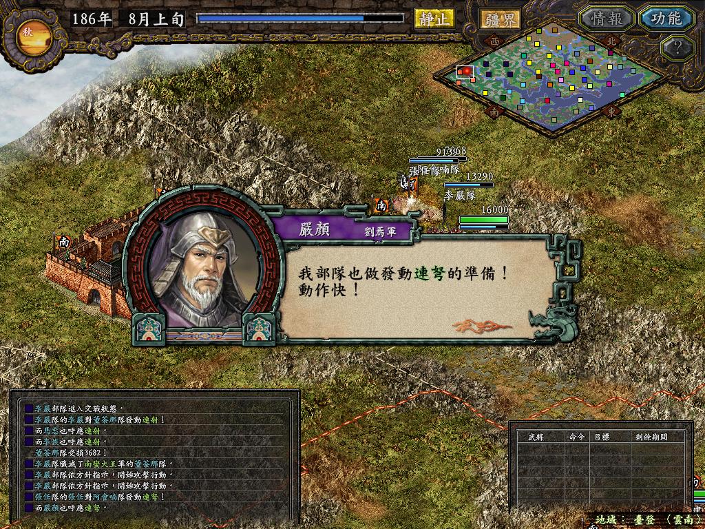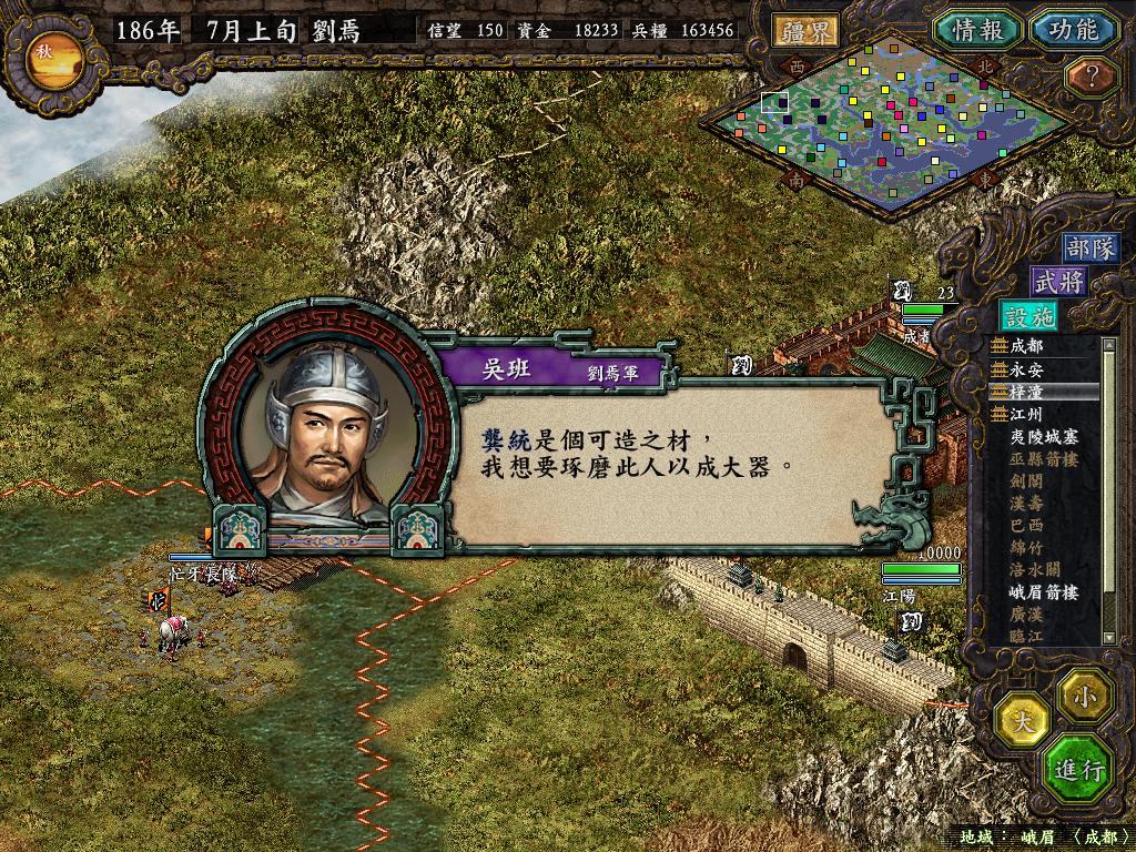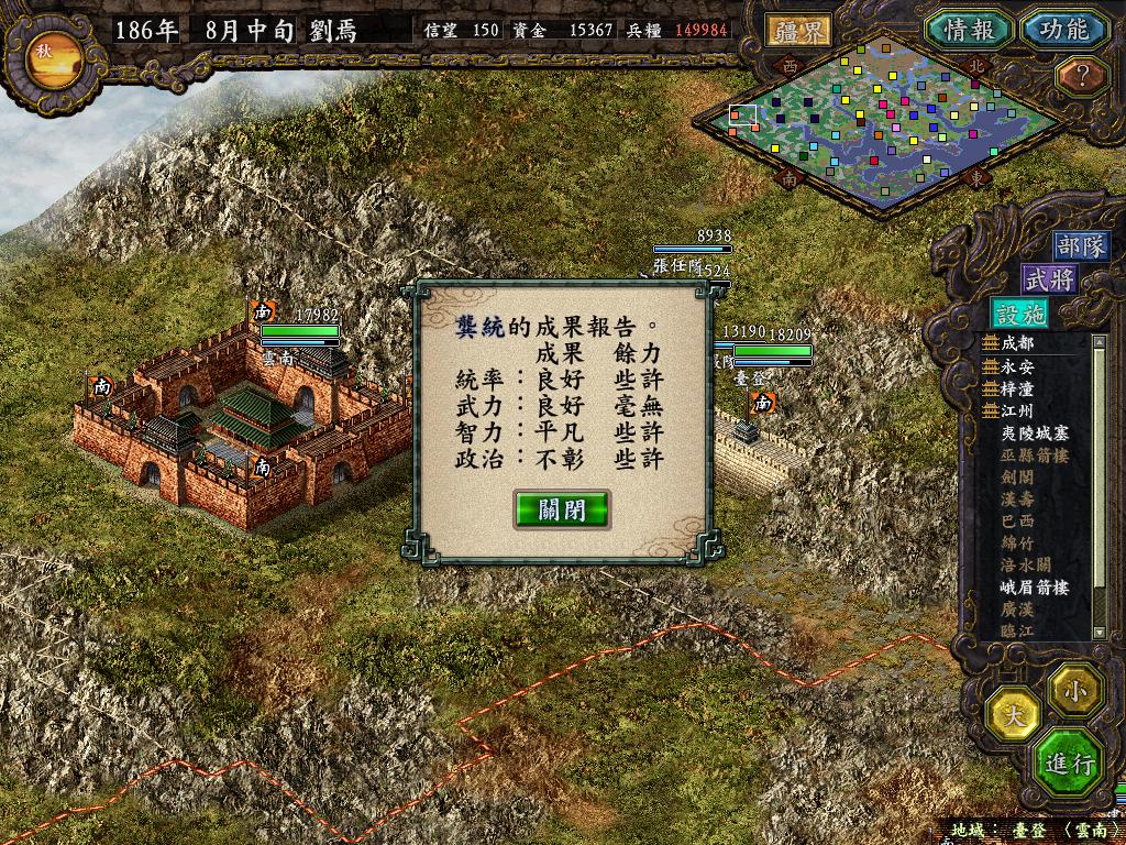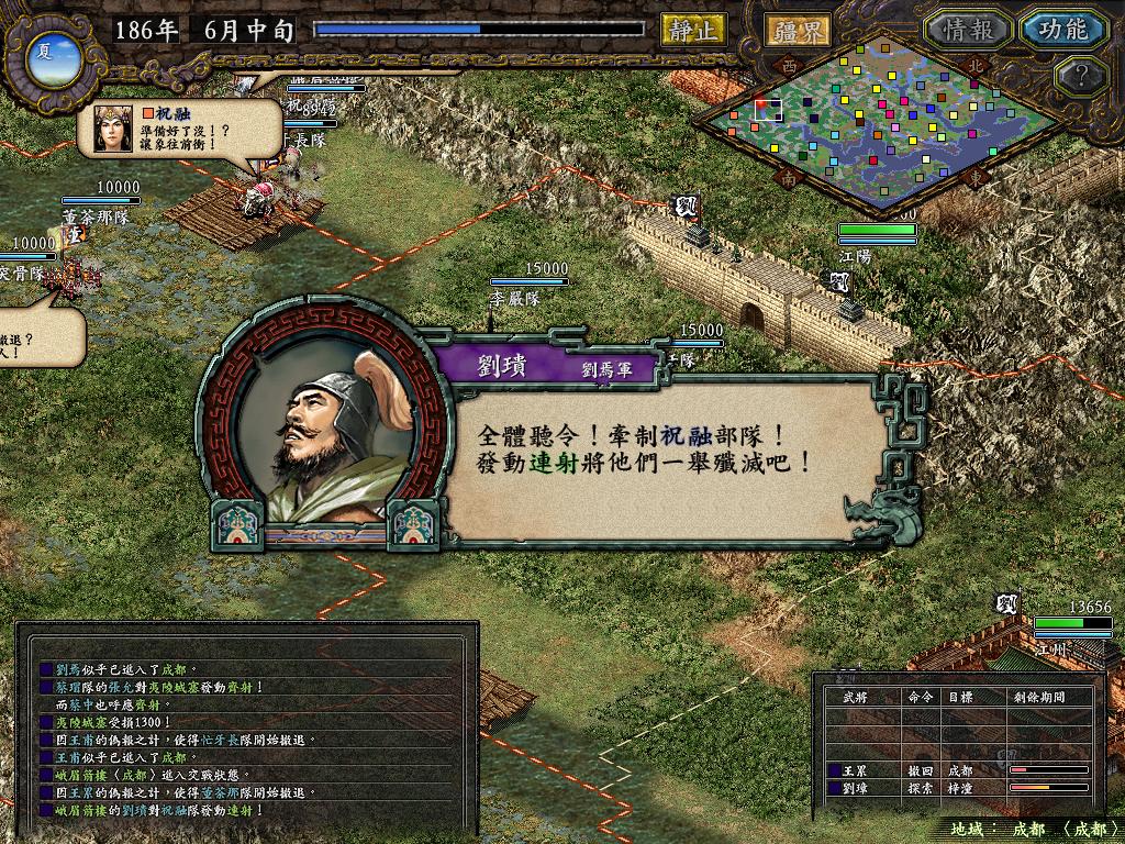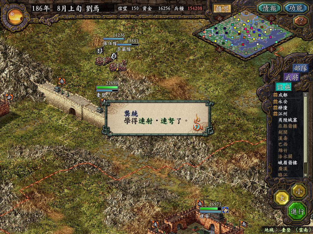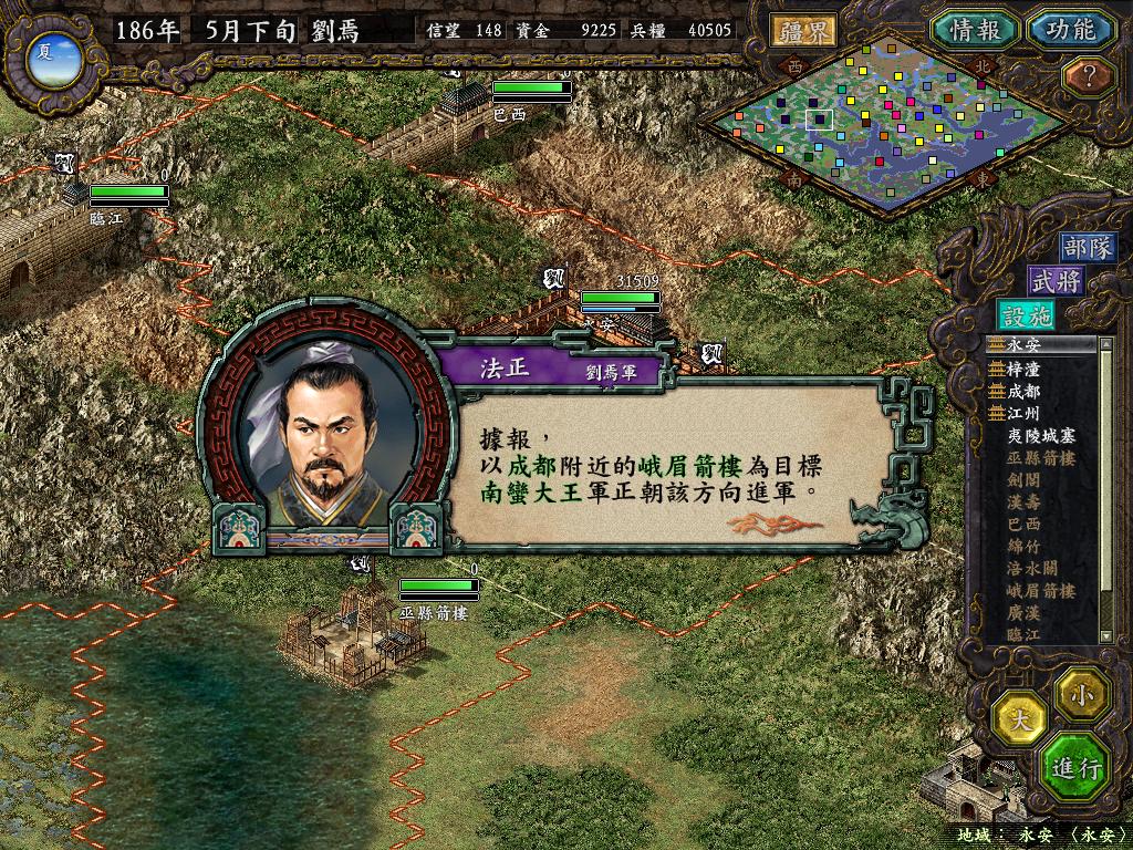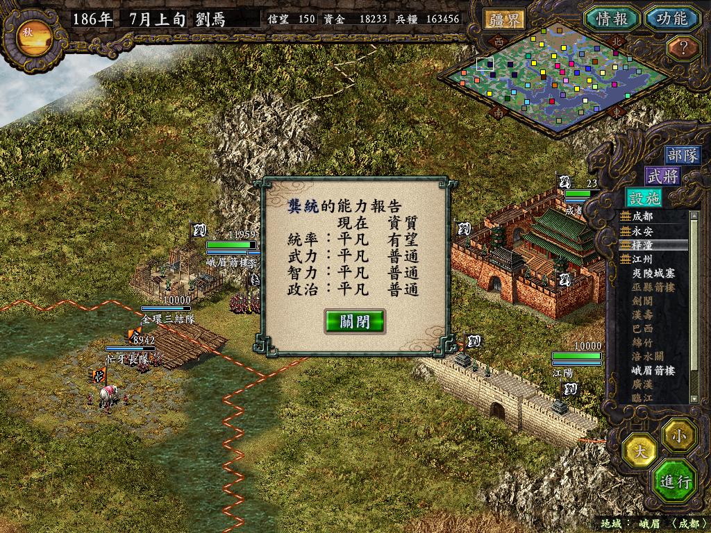 一番苦战之后,张任部只剩余6千余人,但永安也只有了1万6千多人,另一边法正部估计难逃被歼灭的下场(没有一个地方可以救援成功他们,郁闷),不管他,准备让黄权带兵1万7千人,从水路进攻巫县!