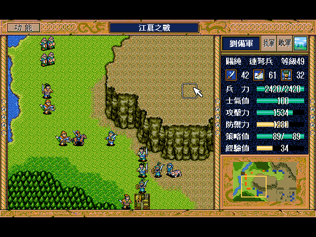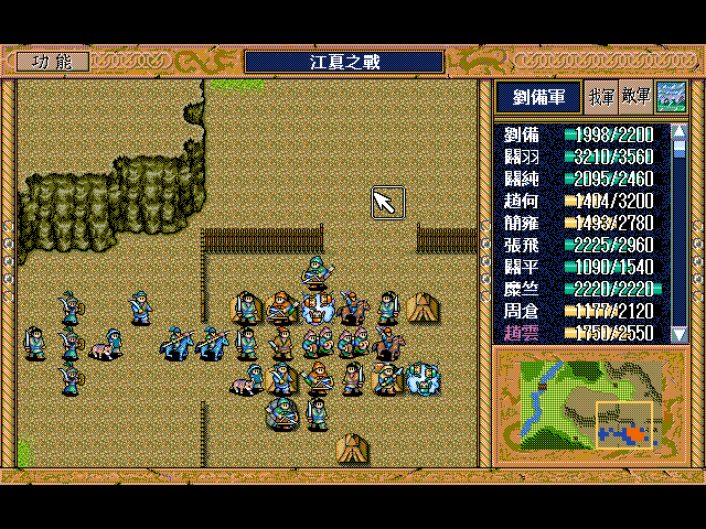 注意的地方:好好利用贼的援助。贼有12点策略的时候千万别在荒地上,在平原时候贼对关平、傻瓜会攻击,对张飞和周仓(满士气)有可能攻击,其他没援助时候都是假情报了。
