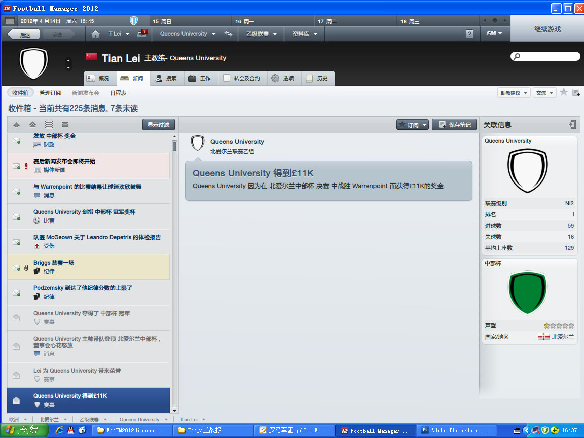 标题: 女王万岁!!!, FM12北爱联赛不完全LLM历程(北爱超第五赛季结束,联赛痛失冠军!)