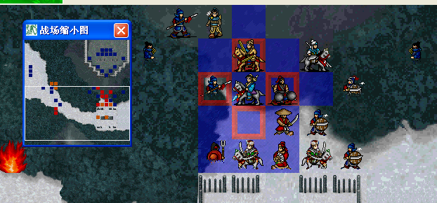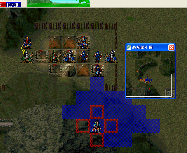 12、管毅和秦琼杀掉一个弓箭手,保证谢映登可以到白框位置。我方刀兵可以直走。