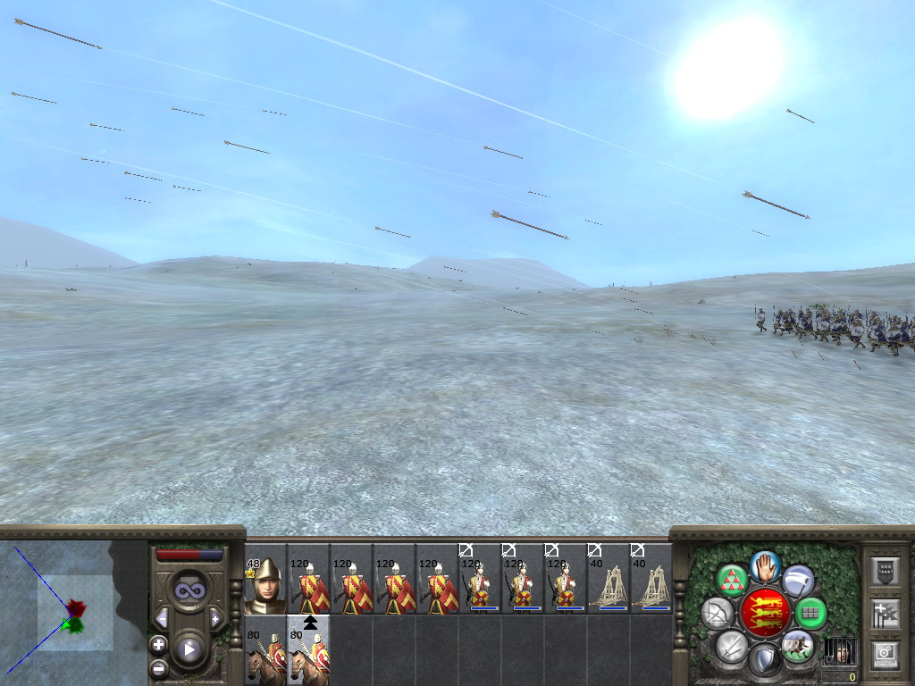 统兵的西西里王子此时能使唤的动的只有自己的卫队了。由于我军大军被严令不得追击,原地保持队形,只有主将和副将率卫队追杀敌兵,这位王子以为有机可趁了。他率领他的卫队奔向高处,之后向我主将卫队腰部猛冲下来!