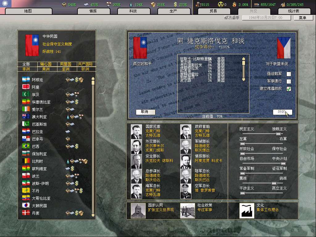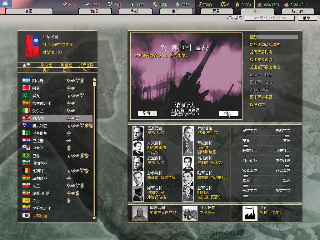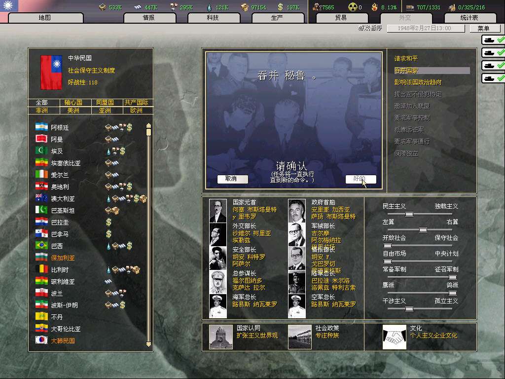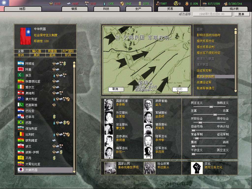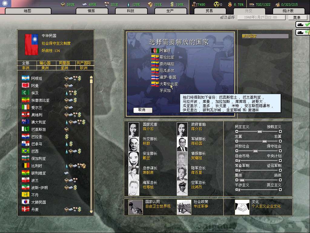 帝国未来最重要的石油供给国大哥伦比亚成立了(这个国家是小黑人国家,我自己给它加了内阁和将领)