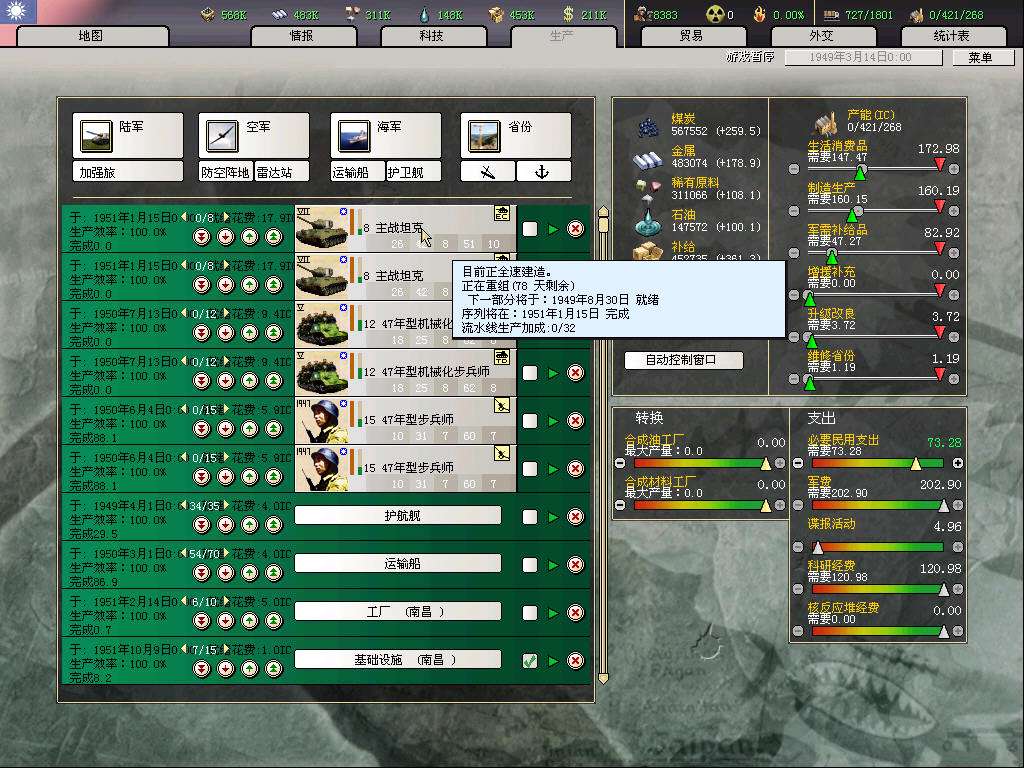 我国面向未来战争的国防力量初现雏形,逐步形成了步兵、机动化兵团、精锐坦克部队的三级陆军体系。算上小弟的部队,我军的陆军总数实际已成为同盟国第一。