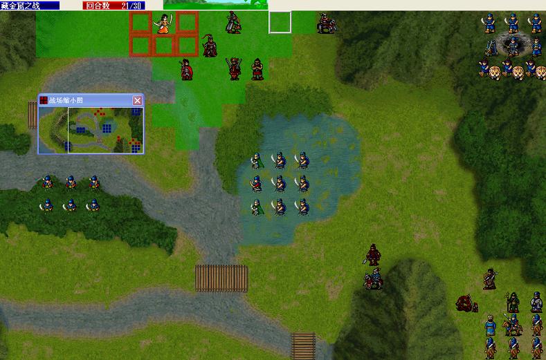 第一回合右上方故意触发四个熊伏兵,把韩彦直引过去。否则,韩彦直会过桥引过来银弹子率领的敌军,对右上的防守不利。