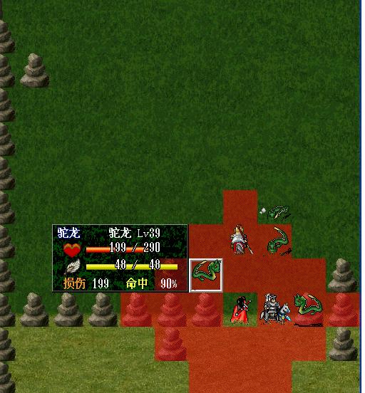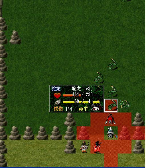 青龙:两个NPC杨BT和医生会主动进入阵中,我方在这里的三人中可先选一人突入阵中,其他两人等医生挂掉再进阵,这阵势效果(我方降攻,敌方升攻)就不会发动。本关要杀掉关主没鼻子靠一个人一回合是不行的,只要SL出第4回合为雨天让没鼻子不能放火即可。如果第4回合不为雨天,则需要等第5回合打残一个没鼻子身边的驮龙,让他忙着加血即可。