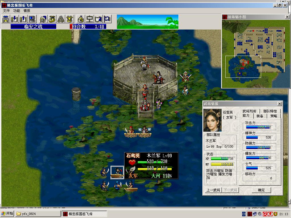 在进入正题之前,先汇总一下这关之前各人的能力加成情况。诸葛锦除了继承诸葛英的能力之外,精神和统御另外再加20点;在金龙阵我刷了岳云爆发力增加50点;杨继周继承杨再兴能力之后攻击、敏捷再各加20点。不过问题是,小杨继承的是小商河结束时老杨降过防御后的能力,即使小商河上第一时间让老杨挂掉,小杨的防御力还是会比正常值低30!