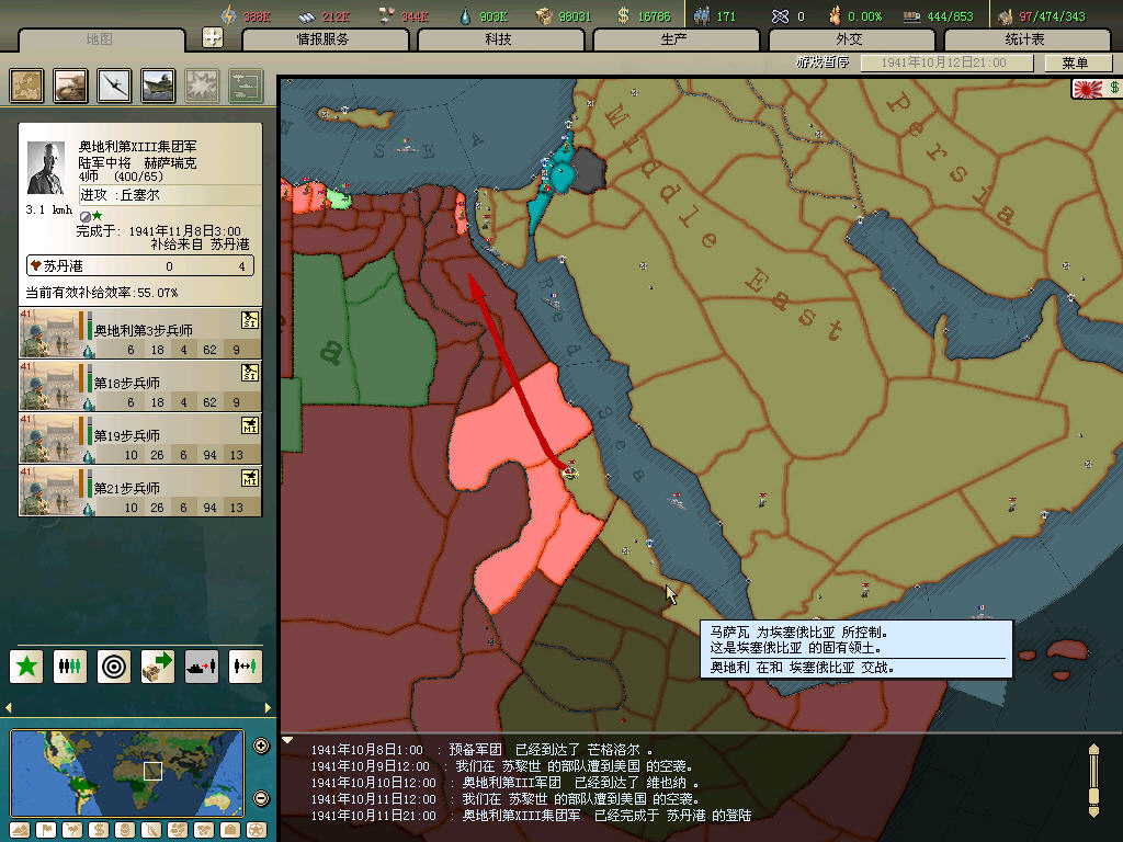 帝國陸軍輕取已無一兵一卒把守的蘇伊士