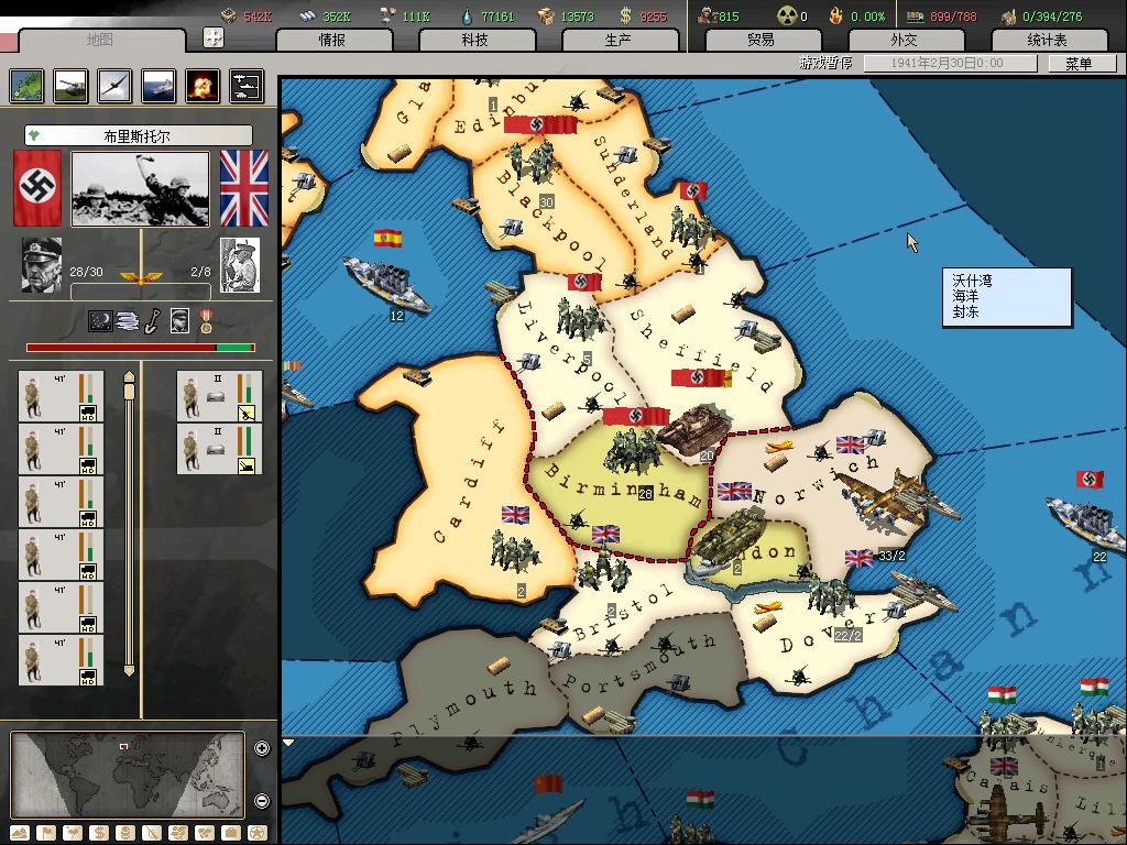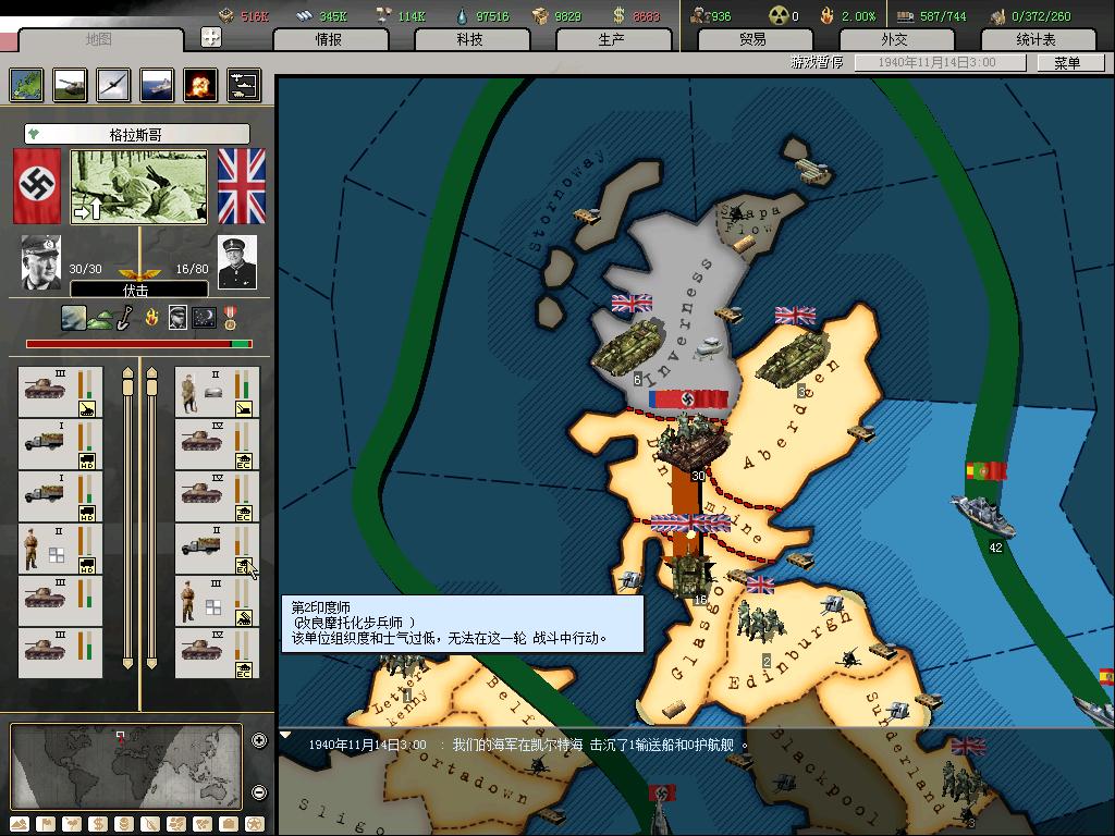 。但是英国的增援部队也到了,不到10%的ESE打起来真的太累,这里又将是一个绞肉场,不过也好,那个要塞师将使英国所有的机动部队在这里被消耗干净,这样后期即使封冻也不可怕了。并且由于运力问题,大量部队将从布列斯特起运,而不是爱尔兰,又要慢很多,现在时间就是生命啊