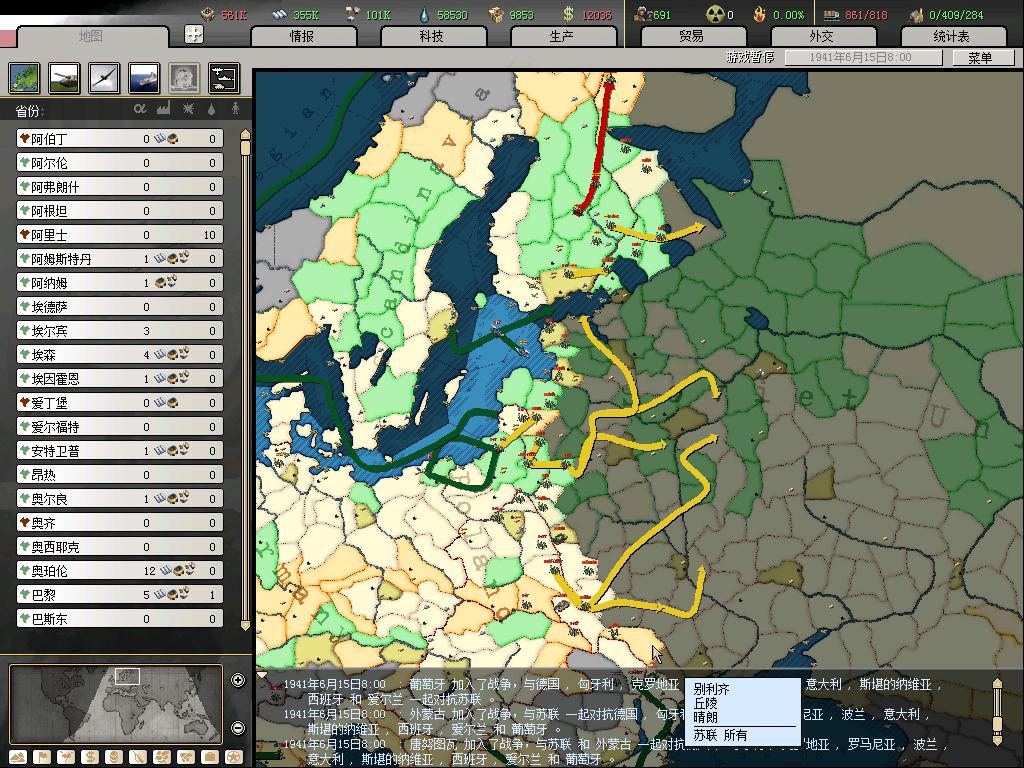 41.06.16事件如期发生,分别是巴巴罗萨-2不满,西班牙增援-1不满,意大利增援-1不满,强攻布列斯特要塞-1不满,