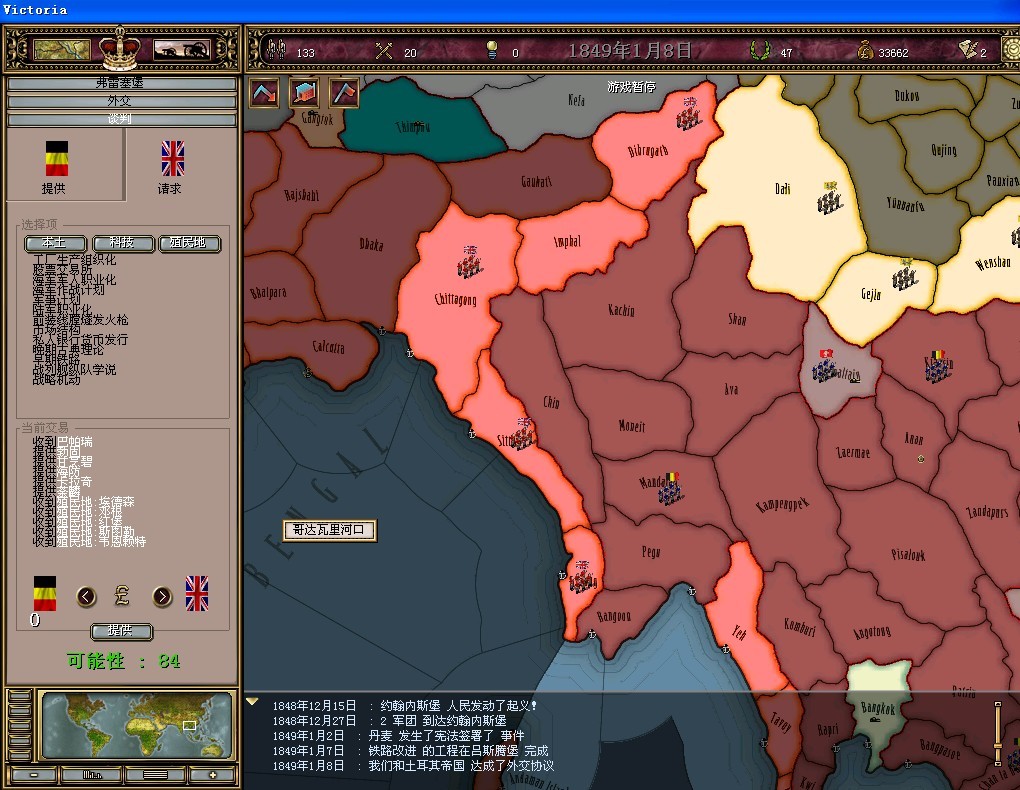 好久没玩,没怎么利用历史事件去抢声望。。。可惜。。。也没有好好利用宣战破产国赚外交点。。。哎,水平下降了