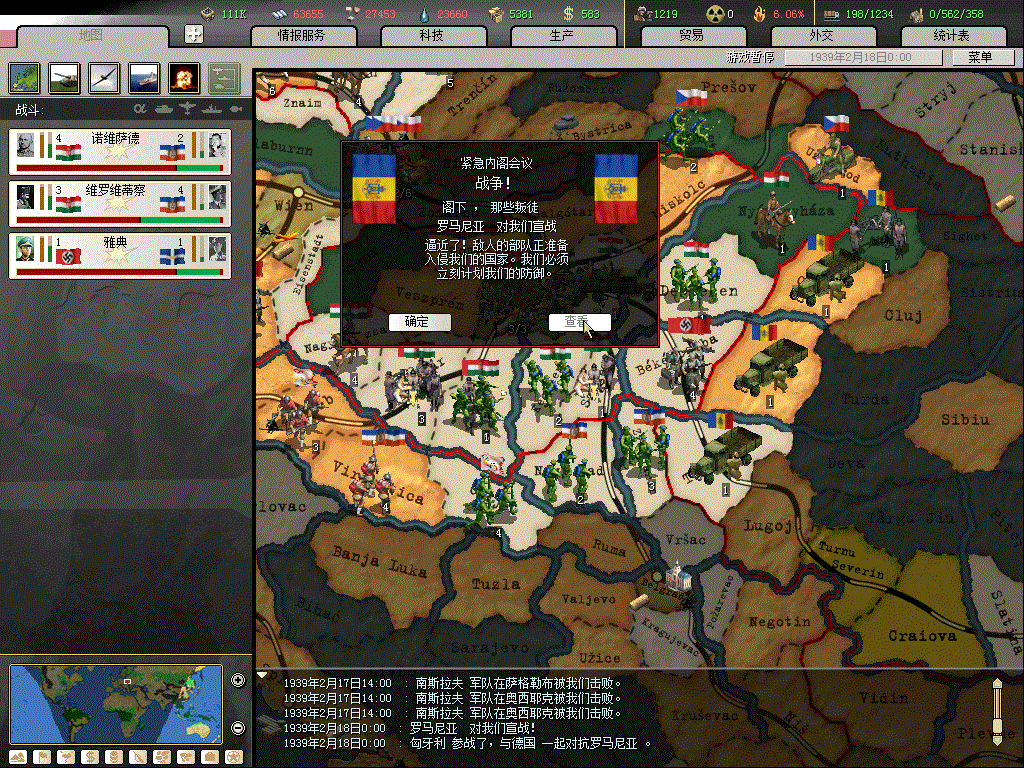 完整的匈牙利还是很强大的,不过貌似没有匈牙利人的顽强战斗 这个事件了???意大利罗马尼亚保加利亚三废材事件貌似也没有了???我看匈牙利白板标准师的组织读也只有66而已,罗马尼亚的也有45,没有很大差距啊,以前的罗马尼亚只有20左右。而且 大匈牙利事件的领土ID应该是有误,对克罗地亚和波斯尼亚的几块地没有领土要求,却对校长,日本,英国等国家有领土要求,找死啊