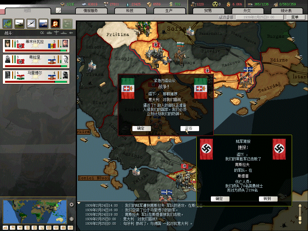 38.12.05这个事件发生后就可以开战了,不过好战是个的大问题,我如果打意大利的话就不在乎好战了(放埃塞俄比亚可以都减掉),可是又不想打