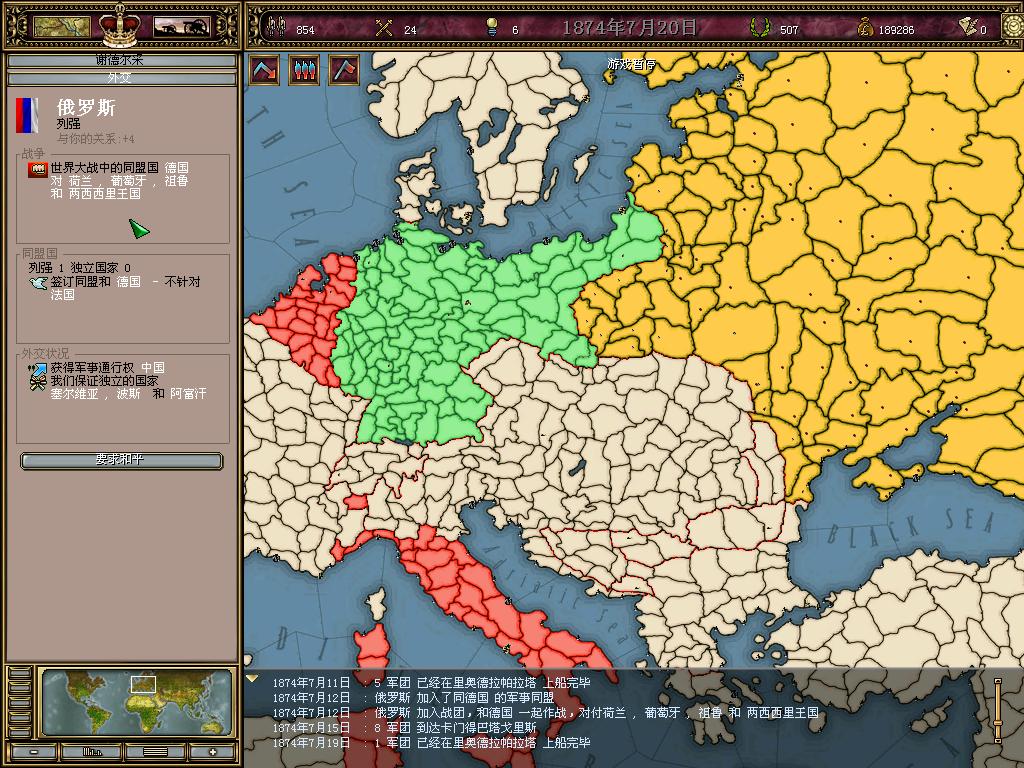 拿下德国之后,眼前已经没有直接威胁,于是开始随意打仗,扩张
