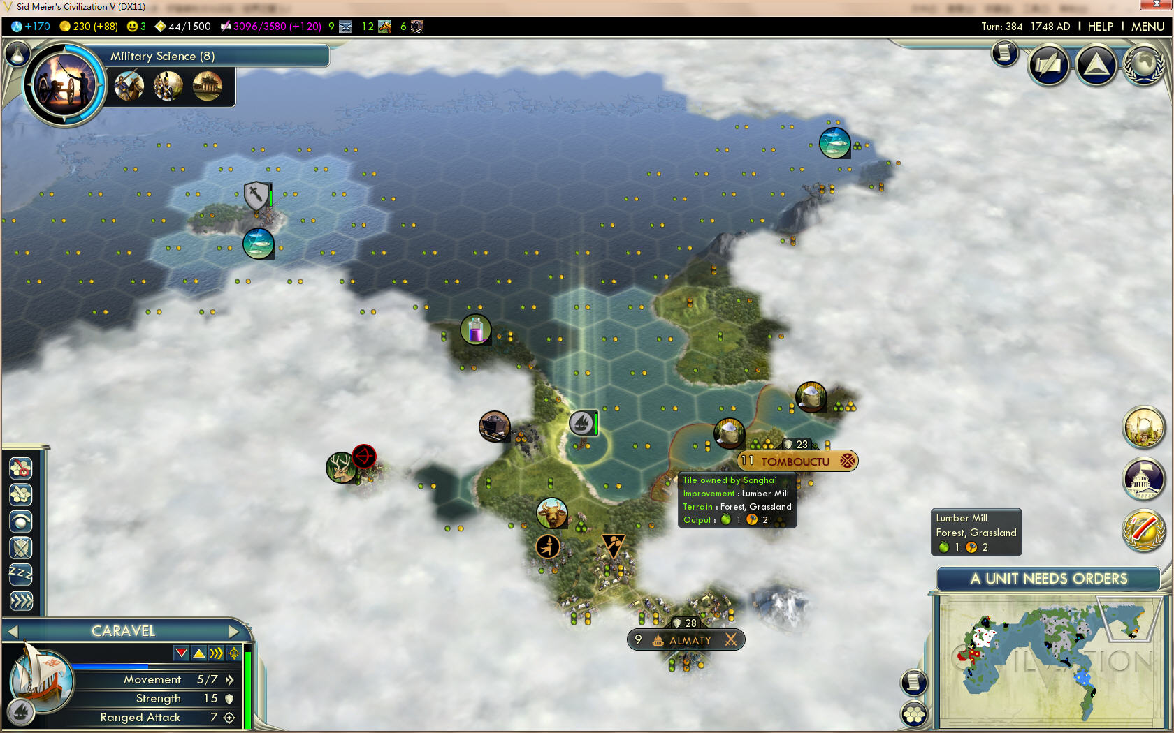 我得到了第一个大商业家,法兰克福的紫禁城也马上要造好了。另外又吞并了原属玛雅的一个傀儡城。