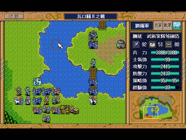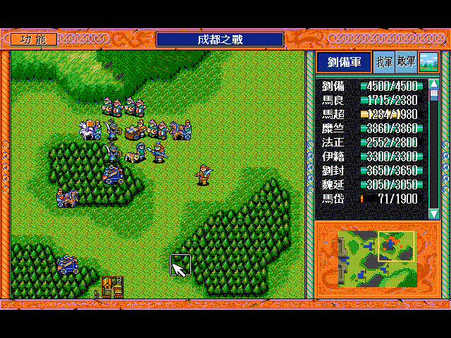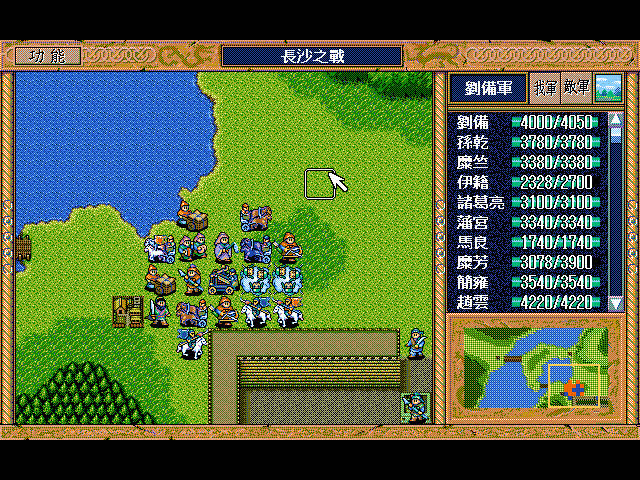 诸葛亮升到43级,不能打曹操了,于是换位靠着糜竺用牵制。