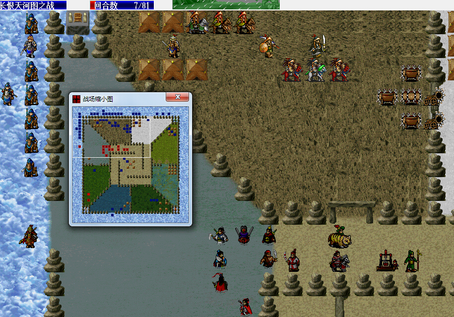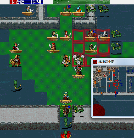 这关的宝物获得条件估计是最让玩家痛恨的一种类型,也就是需要触发友军和敌军的对话,而且还是13个,简直丧心病狂。不过岳飞传的设定还算良心,友军是近战,AI设定是走向目标,敌军目标人物有12个都是坚守原地,只要控制友军的走位就行了。更坑的MOD是杨家将,有个宝物需要触发两个法师的对话,比近战难控制多了。不过杨家将那一关有地形可以利用,还不算最坑。最坑的MOD那是84吕布传,有一关的宝物需要触发两个弓骑的对话才能拿,那个宝物我一般都是放弃掉的。