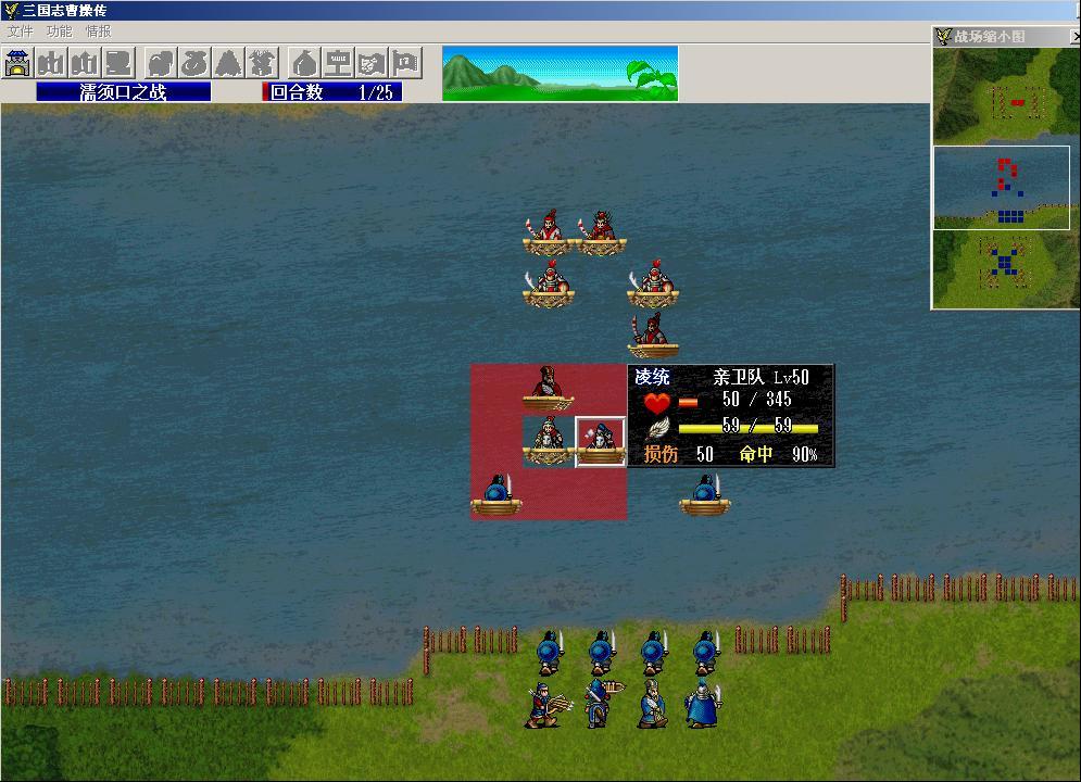 一场急速突破的战斗,距离和地形对我军都不算困难,需要的人也不多,清开路让曹操走过去就行。