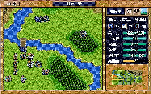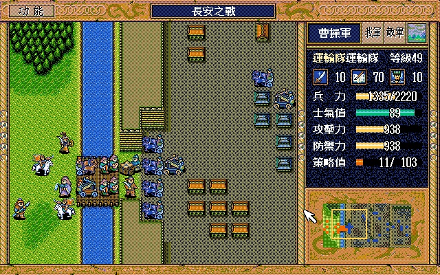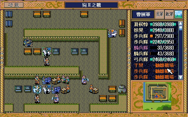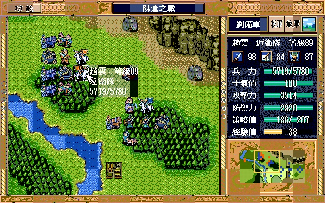 对这四个人再解释一次:刘辟其实很好养的,从瓦口开始前期反击杀伤并不大,后期往往可以让他单独行动,弄个村庄或鹿砦,放个敌骑(最好是名将)在里面就行了, 之所以要求后期追级的贼策略要高原因就在这里;剩下3个大策略者,陈式一个人有富余,按我的进度宛II以后3战都可以再上1个大策略;沙摩柯只需占4个位置就可以用襄阳青囊,所以只需再挤出1战即可;藩宫前面一直可以压级,按木之的成绩到雒I为47.93级,刨去2主将算47级,兖州之后只出了江陵、公安、雒I三战62回合,后面还有没有烧火机会要再算过,但即使现在就变战车也比关纯优了。请注意,关纯天然出成绩应计算到兖州为止,为40级左右,用补丁会高一些,游客丁是42级,再多就要挤占他人资源了。