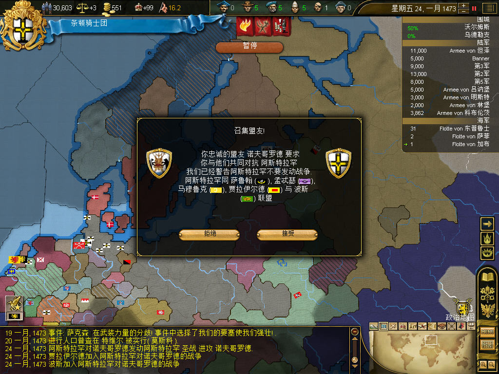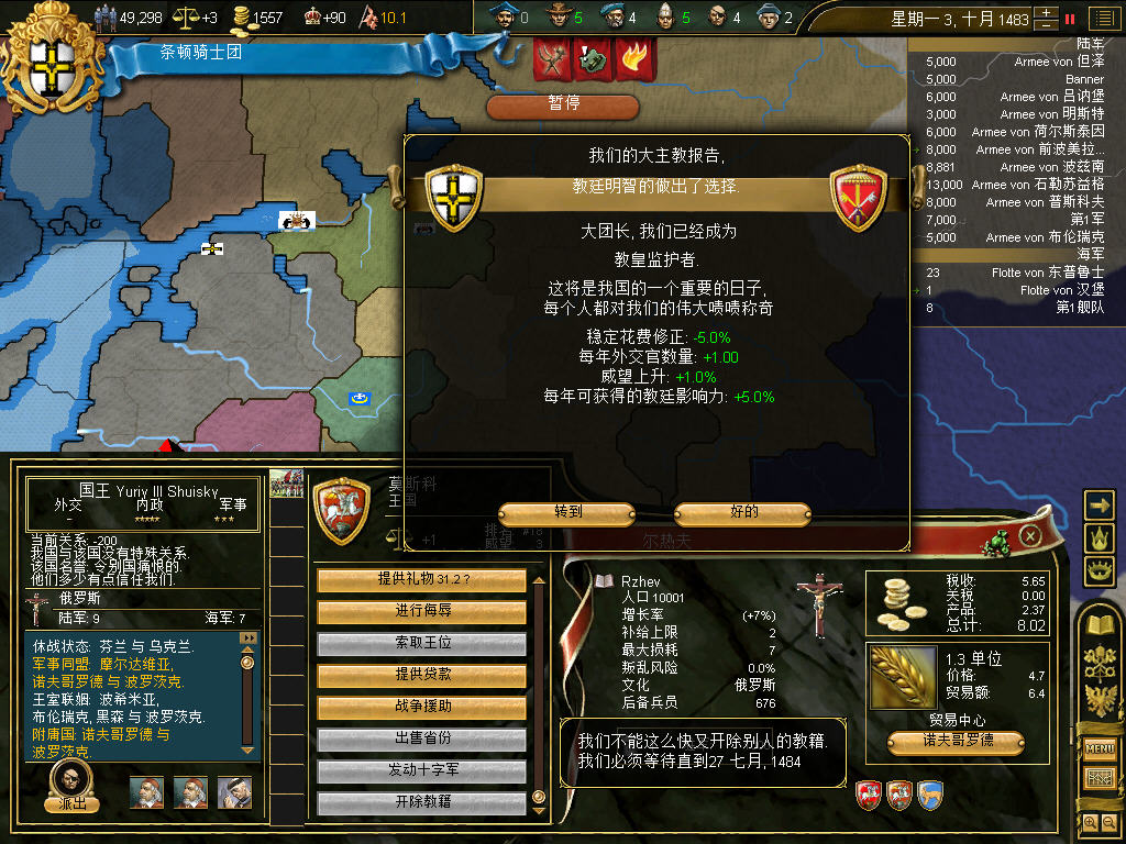 信仰守护者的责任,不过基本决定打酱油,东边有诺夫的宗主国莫斯科顶着,绿教联盟根本攻不进本土