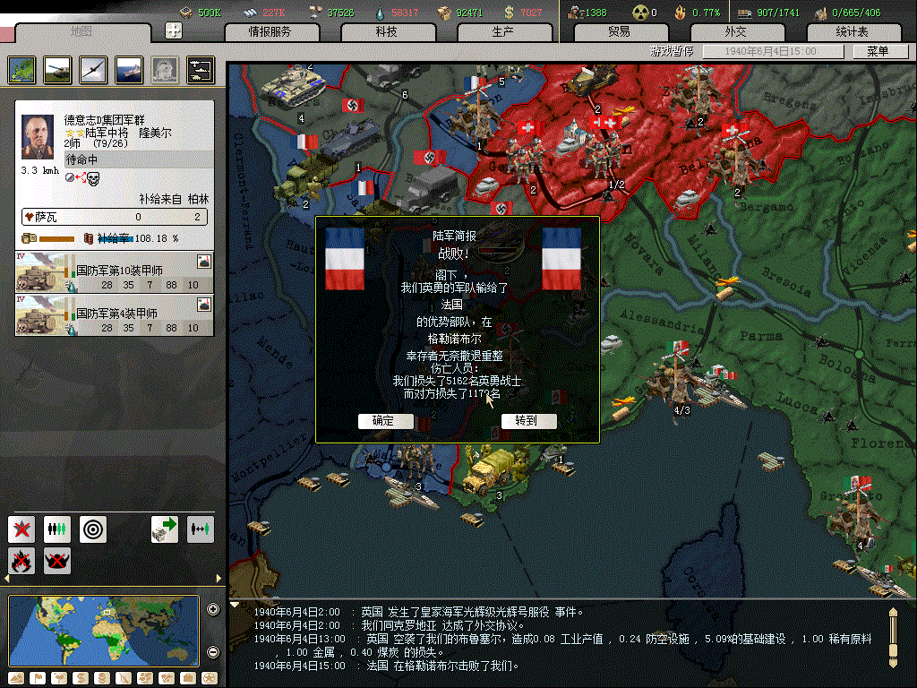 40.07.13空降兵实在太强大了,4个空降师效率极高,配合海岸炮击。打下来毫无悬念,后面就是滚滚装甲洪流