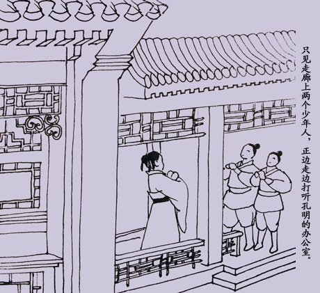 只见走廊上两个少年人,正边走边打听孔明的办公室。