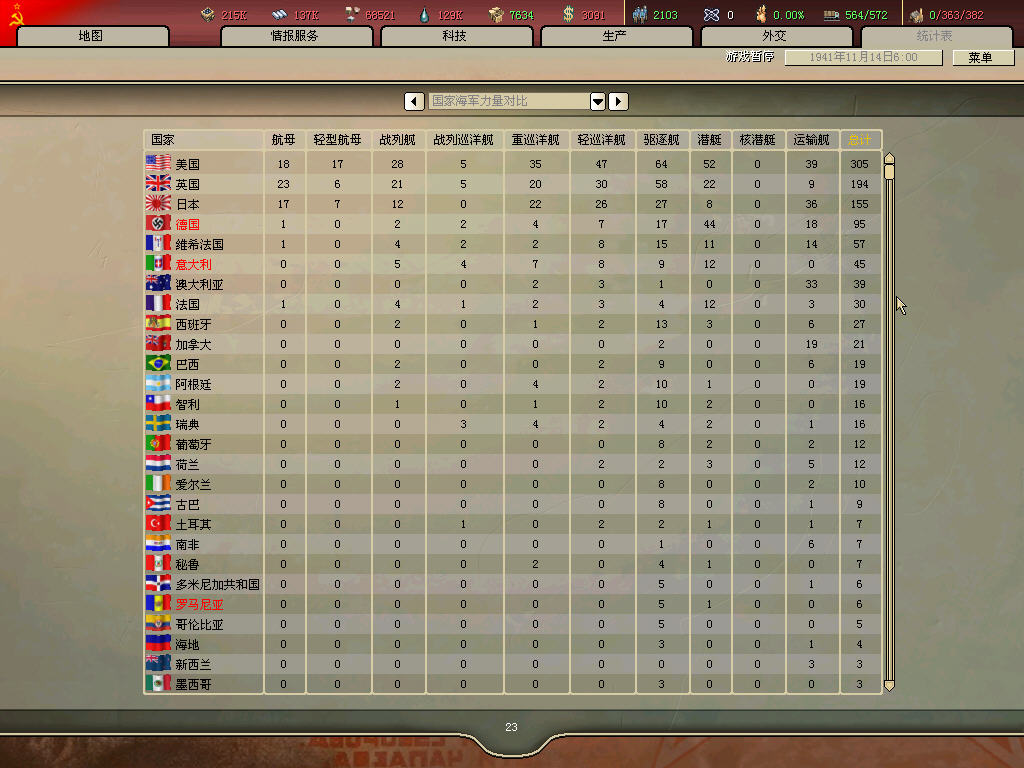 二战至此已全面爆发,美国人除陆军少点,其他都是遥遥领先
