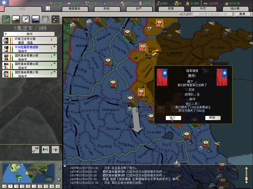 在徐州以伤亡万人的代价第2次抵抗住了日军的进犯