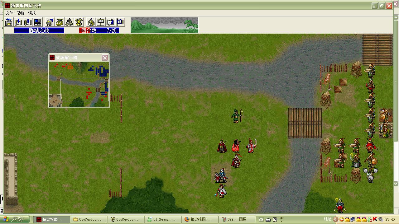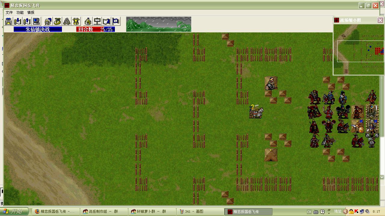 然后给岳云加攻,吃掉一个弓兵,杨再兴也干掉一个弓兵。(我的情况,弓兵决不会不主动攻击岳云)