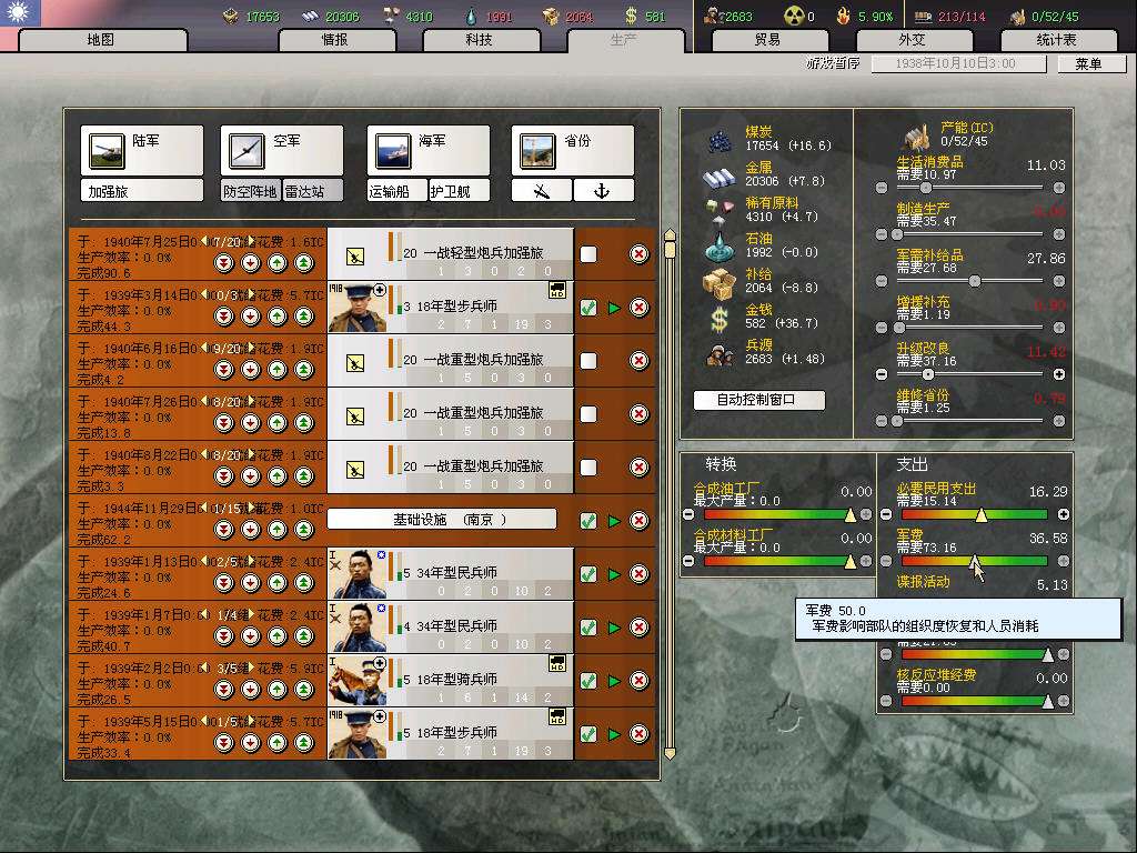 快封冻了,而且防线也稳定了,于是暂时克扣一半军费,来年解冻后再恢复,生产也全部停掉,全力节省ic用来升级27师