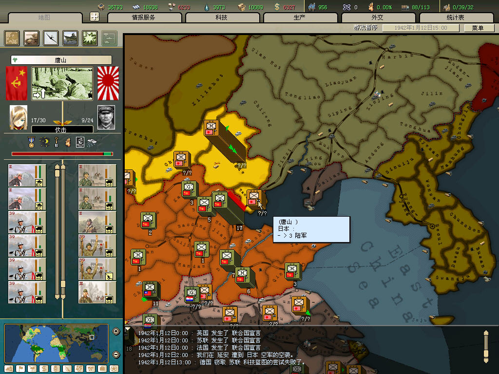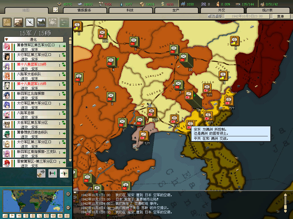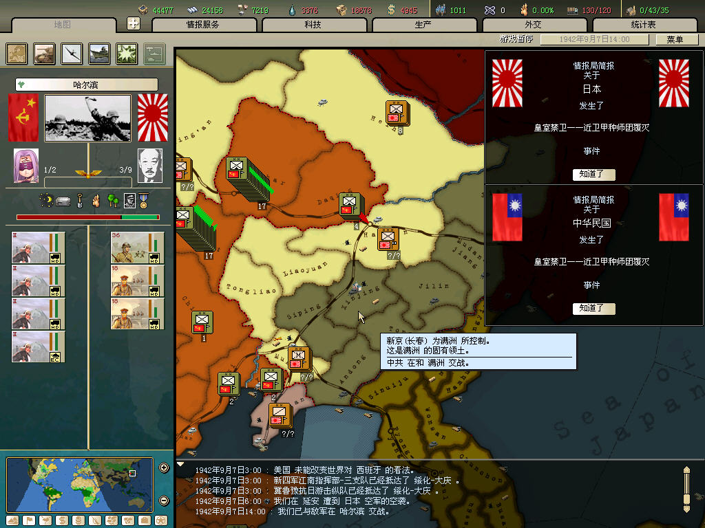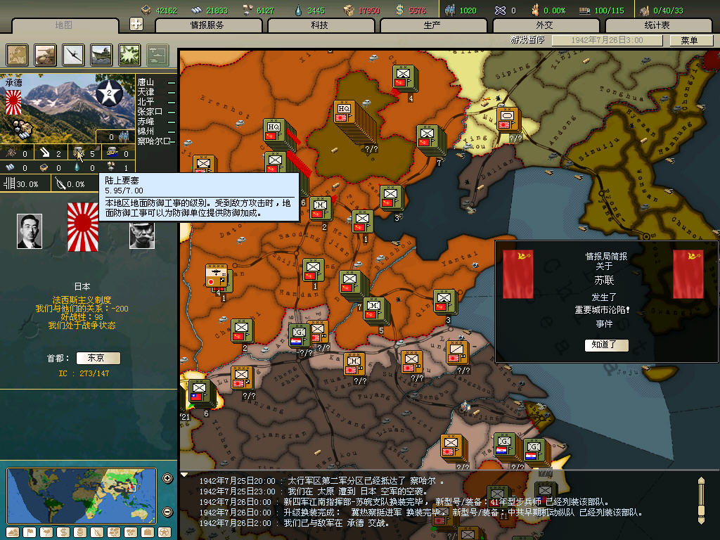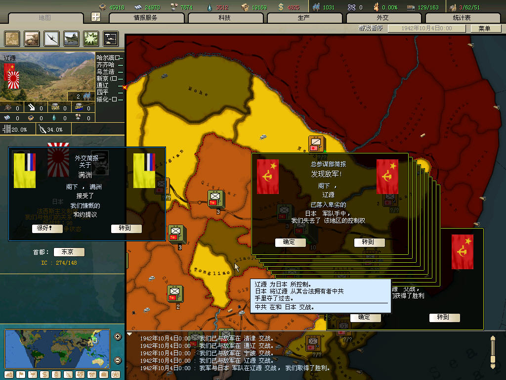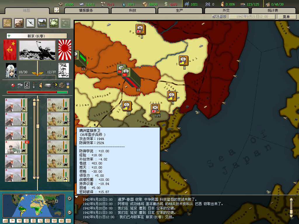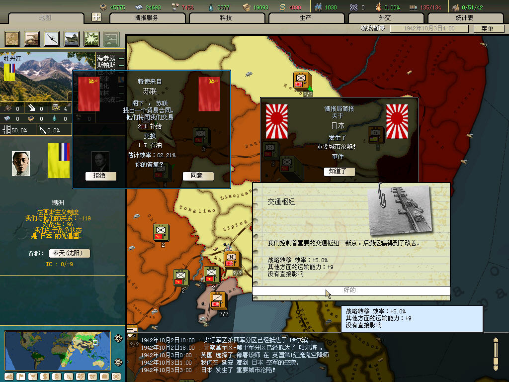内政方面拉三条41标准步兵,一条补给船,一条运兵船流水,然后在新京 奉天 哈尔冰三地盖厂,再有余力就加上北平和天津