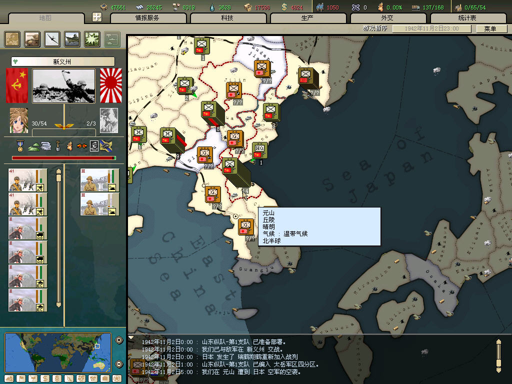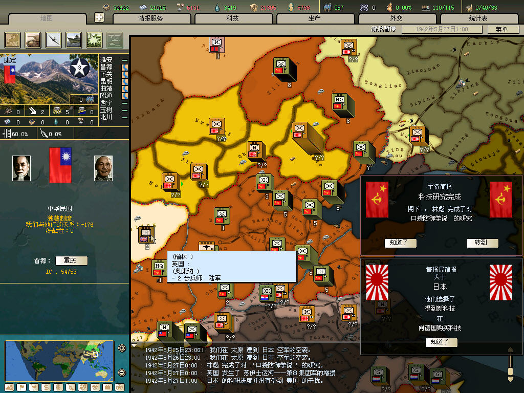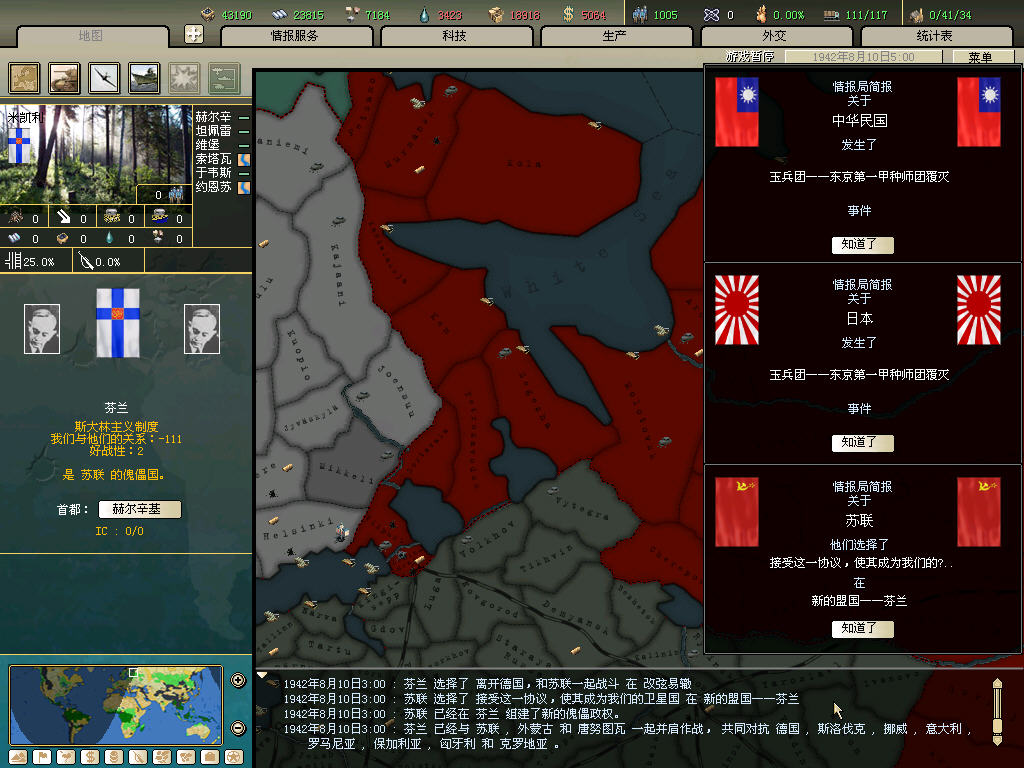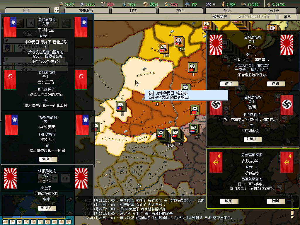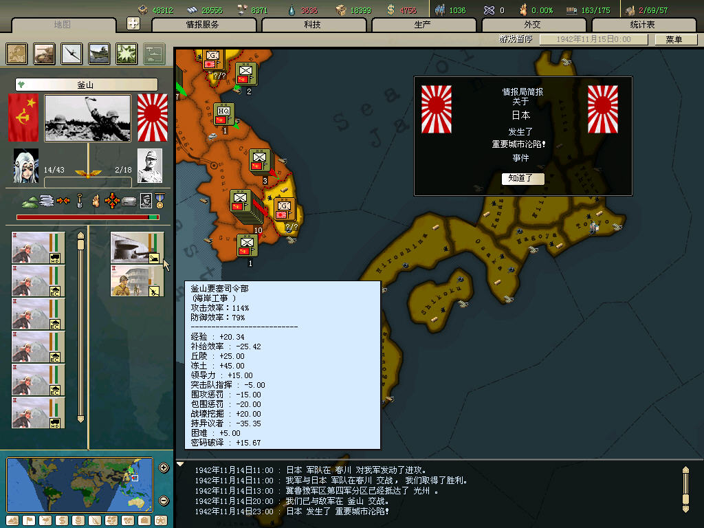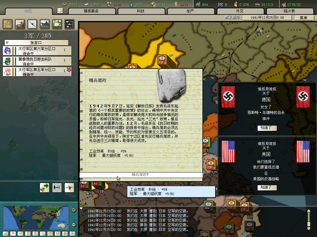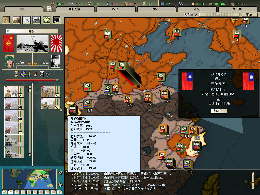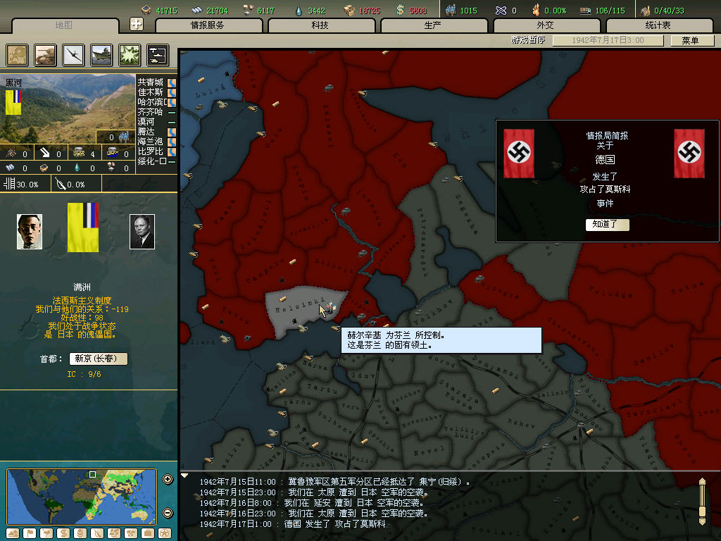 内政方面拉三条41标准步兵,一条补给船,一条运兵船流水,然后在新京 奉天 哈尔冰三地盖厂,再有余力就加上北平和天津