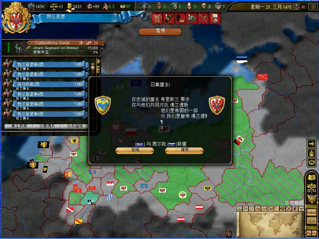 弗里斯兰要求公国出面对抗佛兰德斯...为了5点的威望,完全同意没问题,^_^