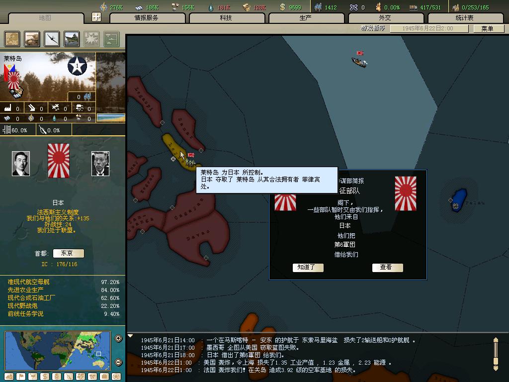 标题: DA1.3原版36满州国娱乐战报, 已更新至:1948年夏季 中日满轴心对抗英法美同盟 欧洲反攻势如破竹 攻陷华沙 吞并波兰!