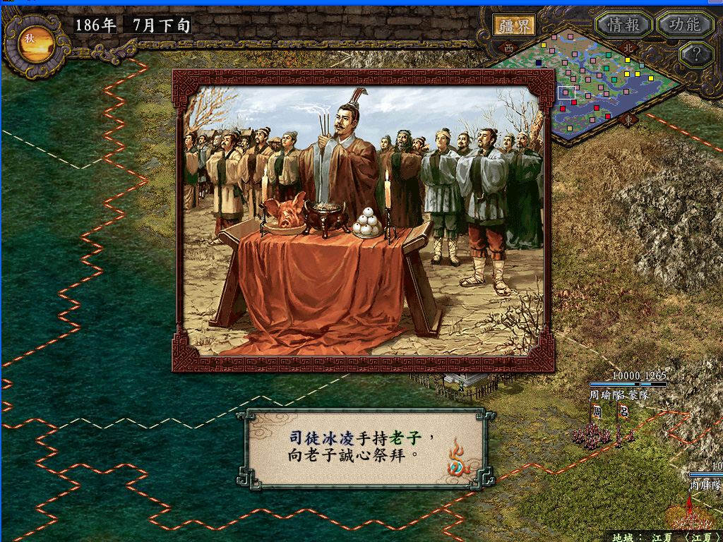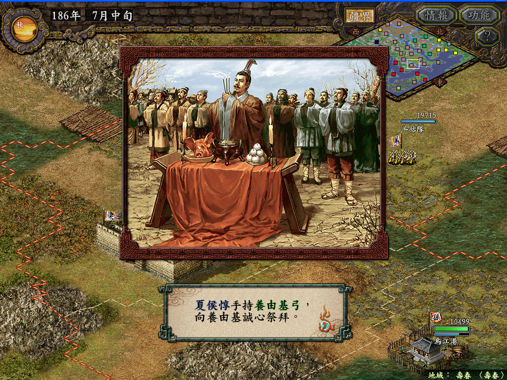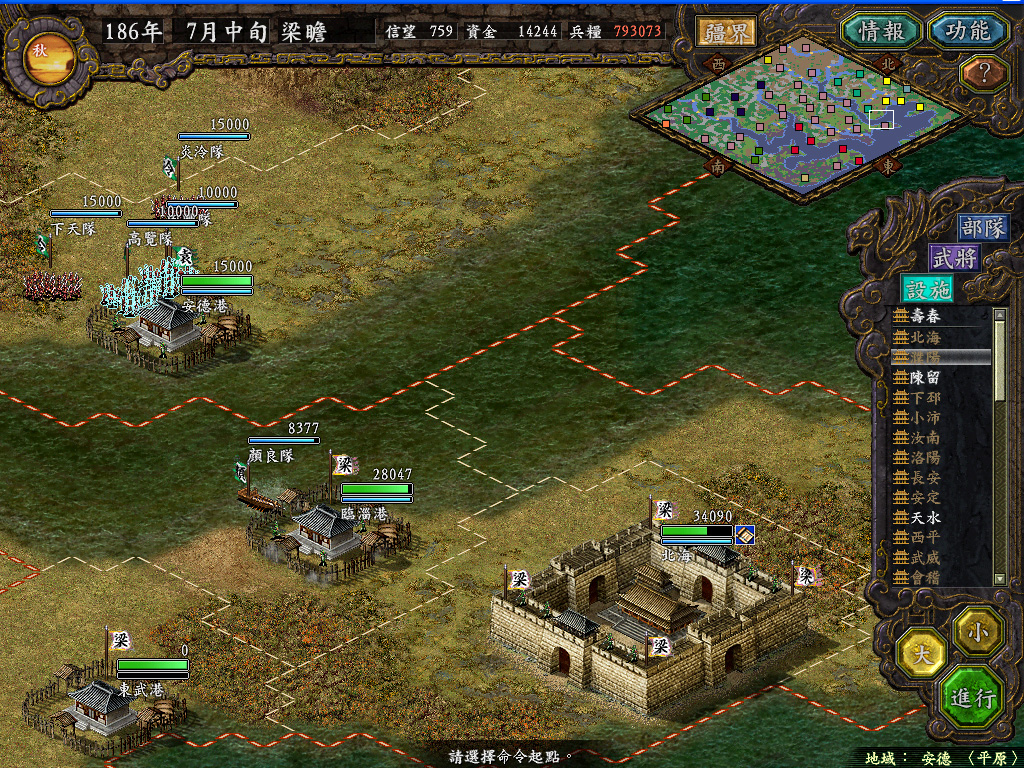 从风的发飙被证明是荆川战局的关键~永安可算川中门户(从汉中进攻要经关山重重,从交趾入川路途遥远又有南蛮虎视在旁),拿下永安重兵屯驻,守能确保了襄阳江陵的安全,攻能威胁川中诸城,被偶占着二刘当然是如鲠在喉寝食难安了。当下联军攻出,准备与偶会战永安