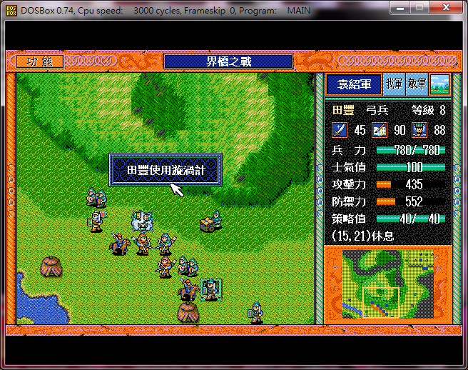 看了別人徐州II的攻略,忽然覺得要排陣給藩宮燒真是困難