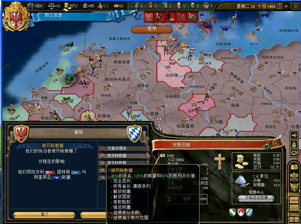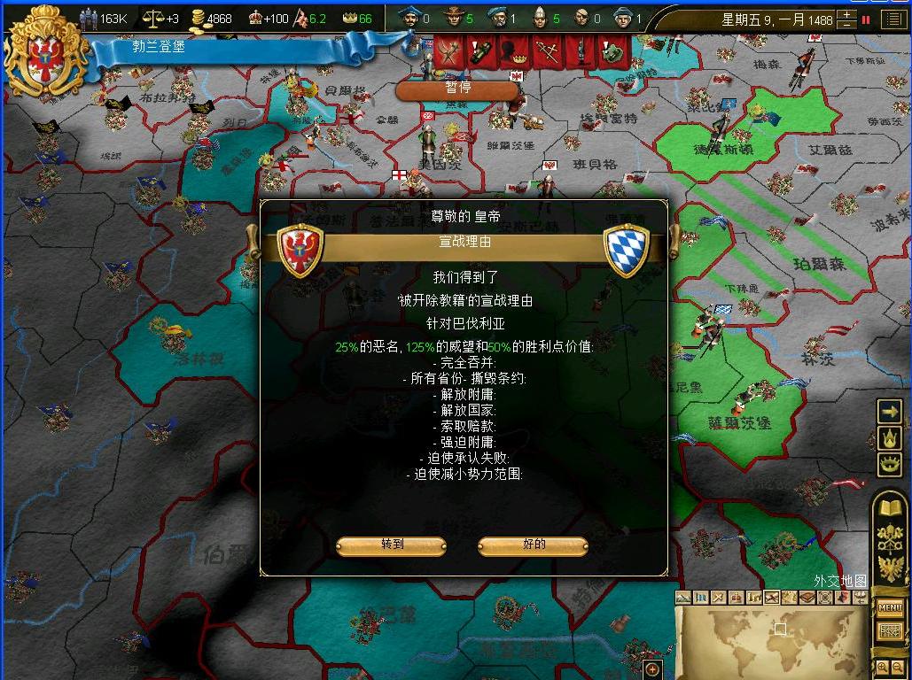 和帝国关系一直很好的教皇国居然也参战了....没办法,虽然不想和他们的关系搞差了,但是还是不得不出战...需要和教皇国速战速决