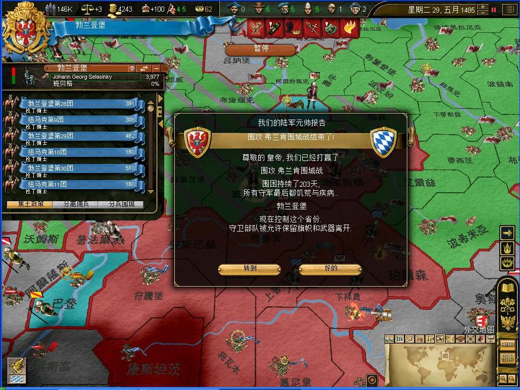 利佩被攻克了,刚刚完成围城的军团需要迅速直插中路,因为我们的一个省份也在被围困着呢...