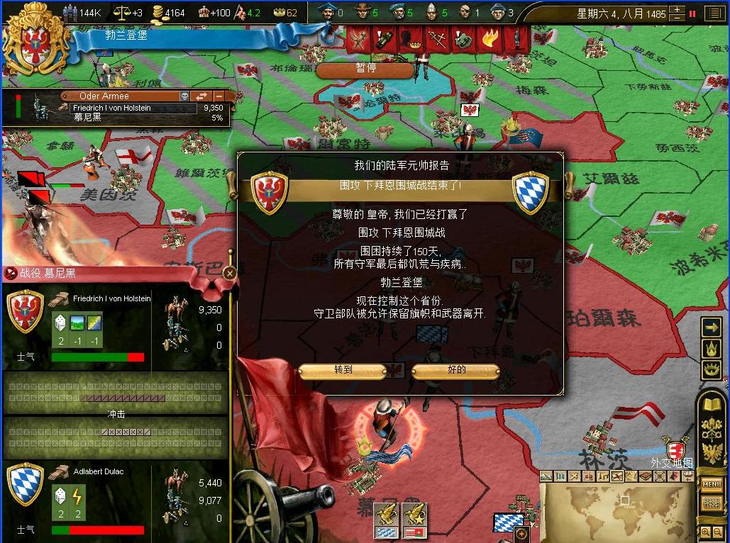 黑森公国和教皇国的兵力对于帝国而言都是小菜一碟,而且为了这场战役,帝国集结了整整5个军团,对方的部队在我帝国铁军面前毫无威胁...连续被歼灭